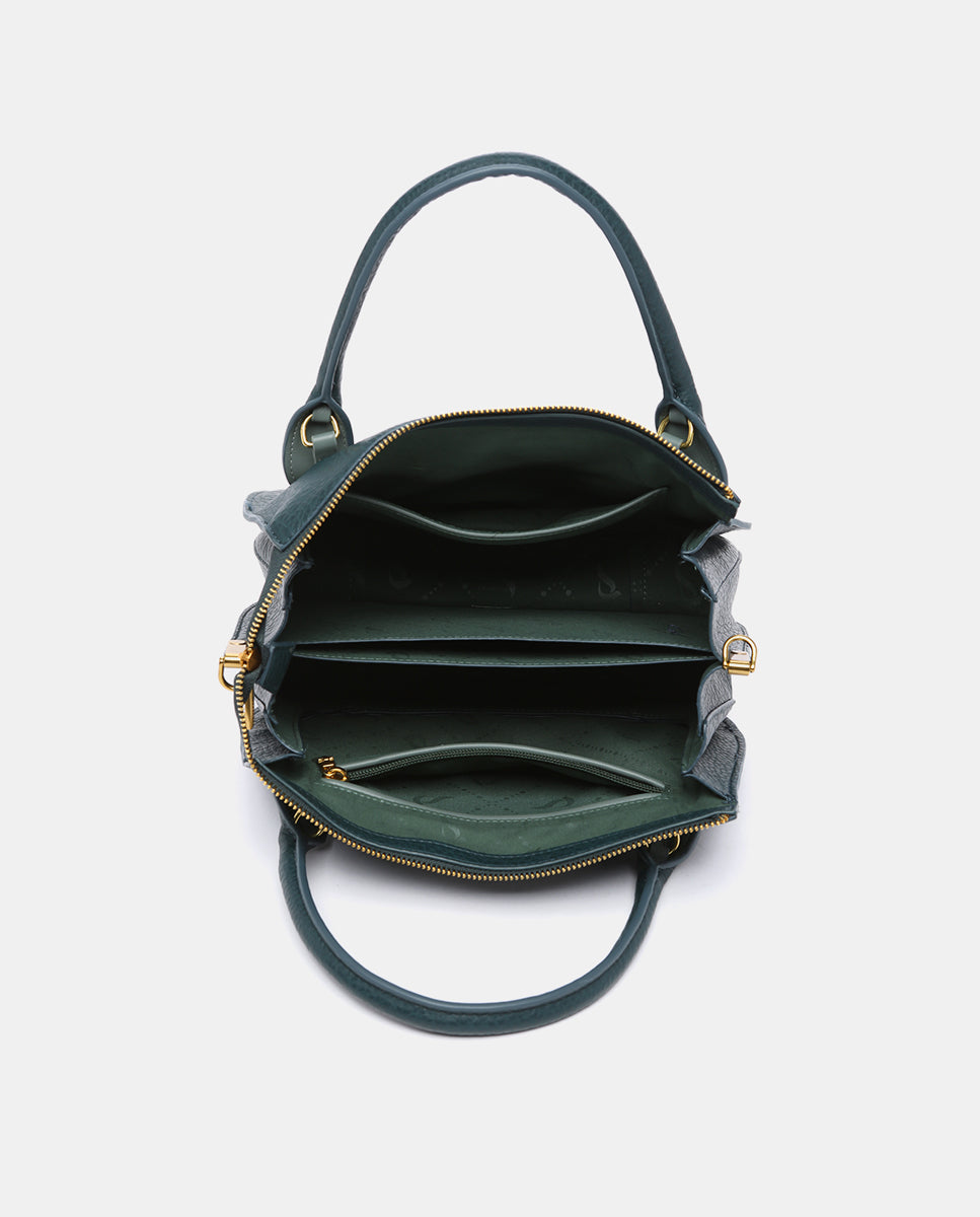 • Combina su doble asa de mano con una práctica bandolera textil, que puede regularse y es de quita y pon.