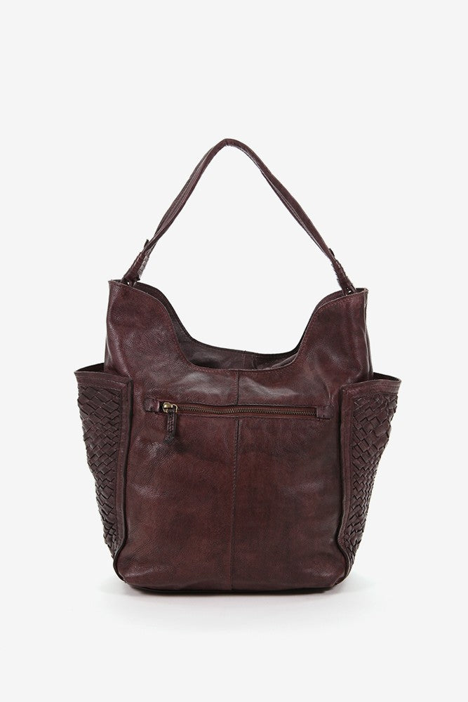 Bolso hobo de mujer elaborado con piel Premium con un bonito efecto lavado. Este modelo, combina piel lisa con detalles artesanalmente trenzados. De inspiración mediterránea, se trata de un diseño amplio, holgado y con una estética muy especial.