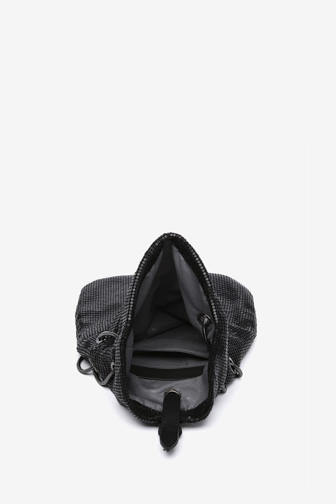 Un bolso de fiesta original y atrevido que te hará brillar allá dónde vayas. Este modelo es una opción ideal para crear looks únicos con los que no pasarás desapercibida. Un diseño en forma media luna elaborado con malla metálica ideal para ocasiones especiales.
