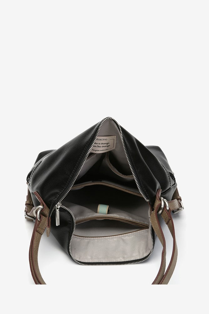 Bolso de hombro convertible en mochila elaborado en materiales reciclados y sostenibles. Un diseño de líneas sencillas, que se convertirá en un básico de tu día a día. Sus principales características son:
