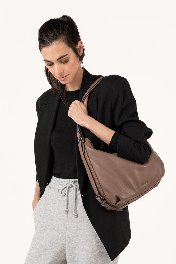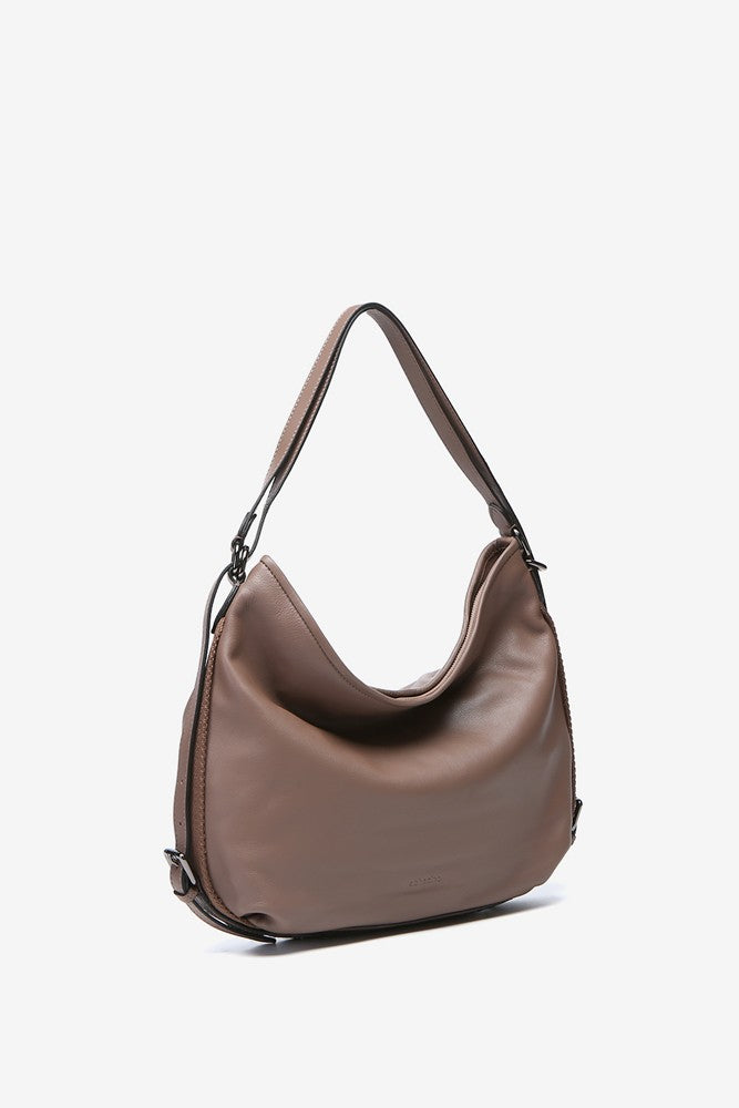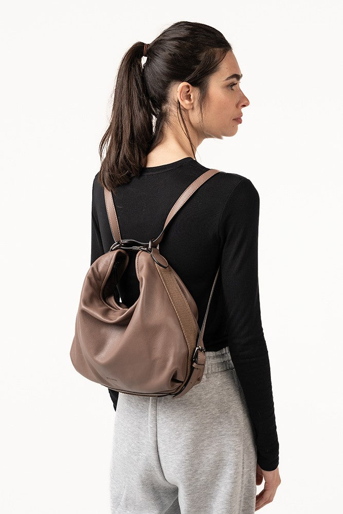 Bolso-mochila en piel taupe