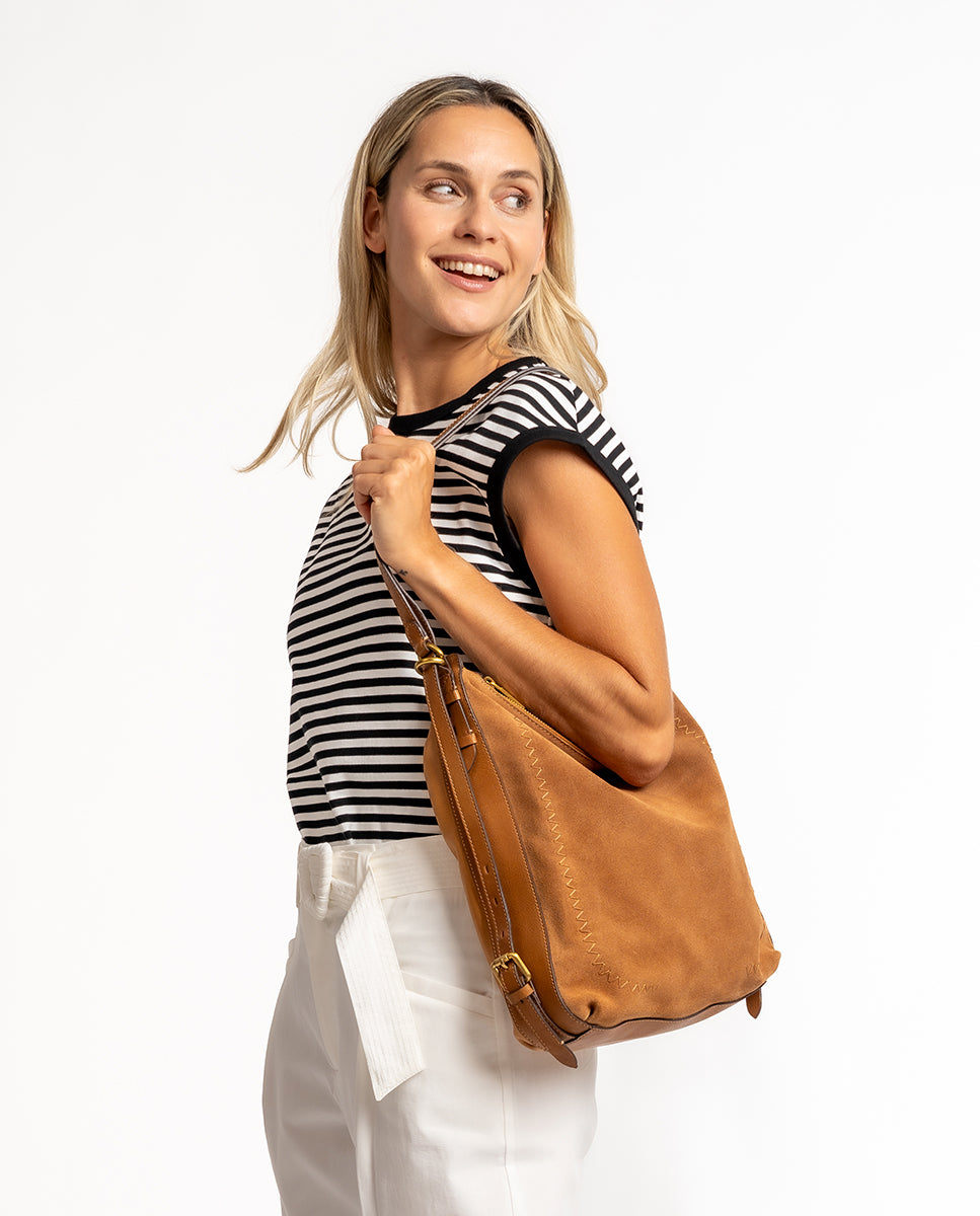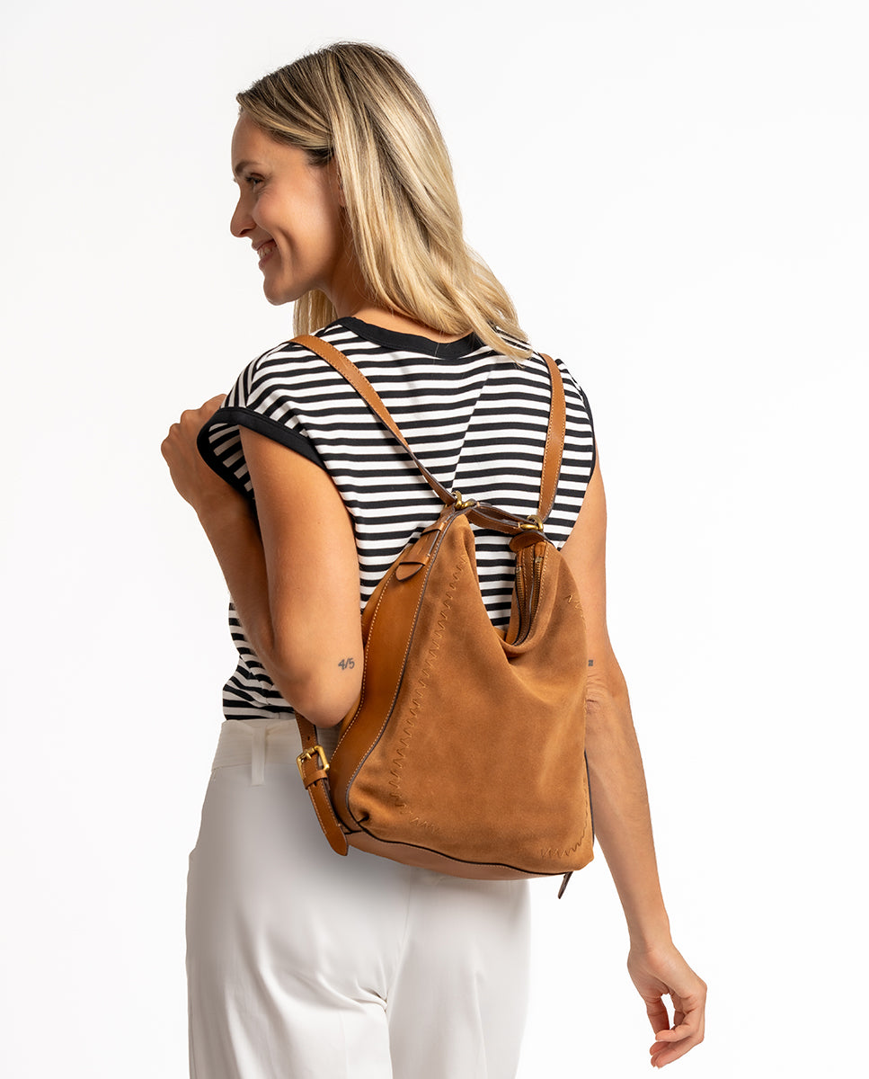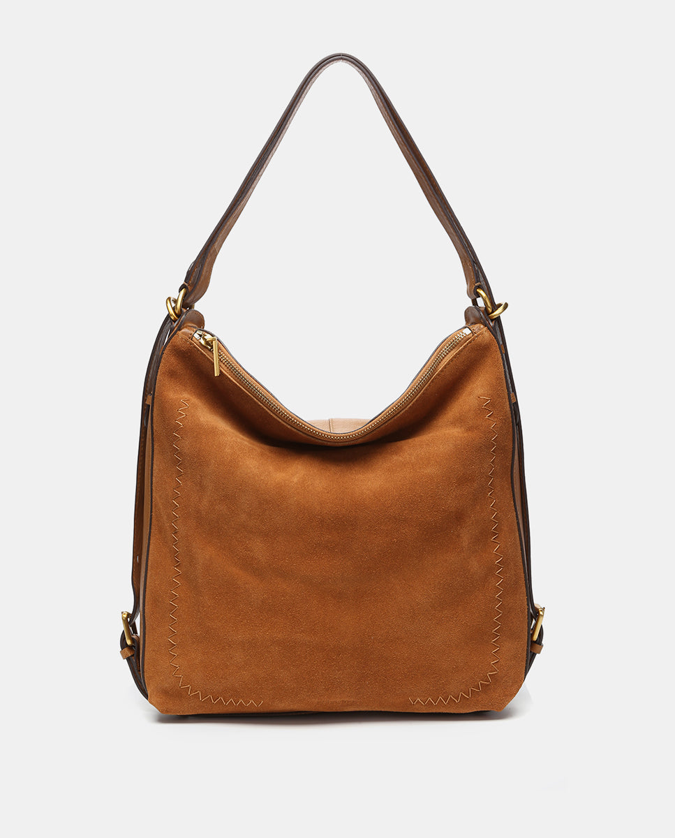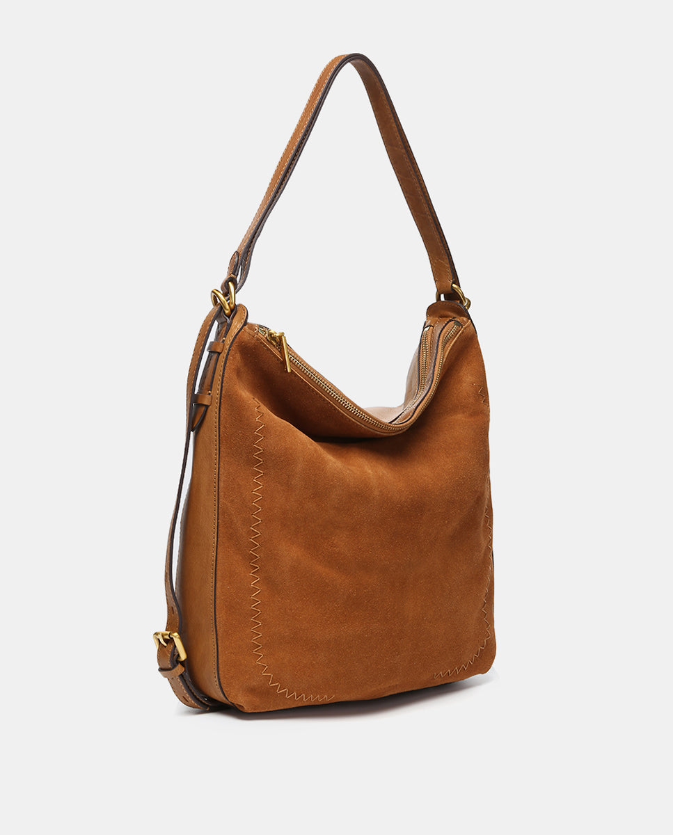 Bolso de hombro convertible a mochila en piel de serraje Premium. Un modelo en colores atemporales y muy fáciles de combinar que refleja elegancia y un aire clásico. Sus principales características son: