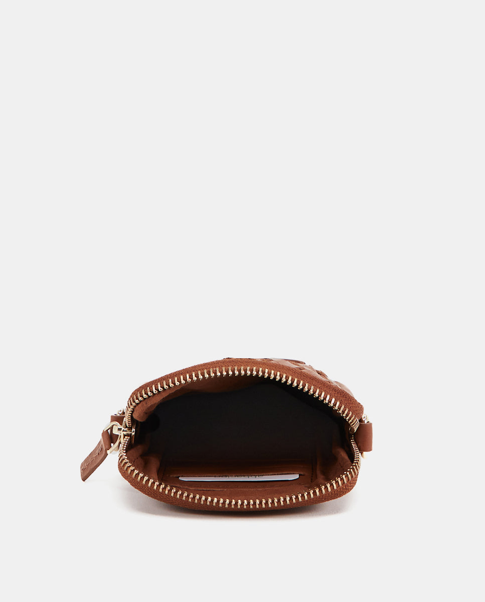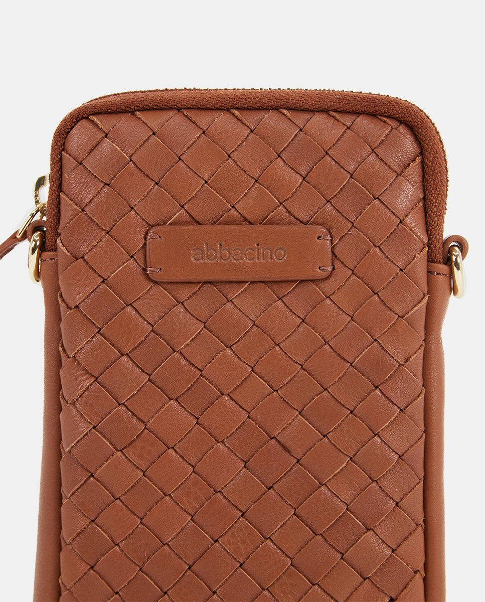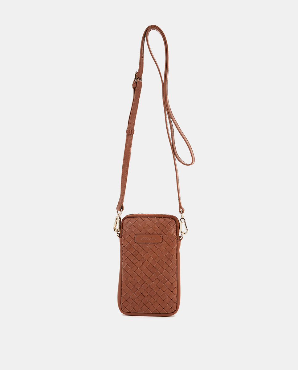 Bolso para el móvil de piel trenzada en cognac