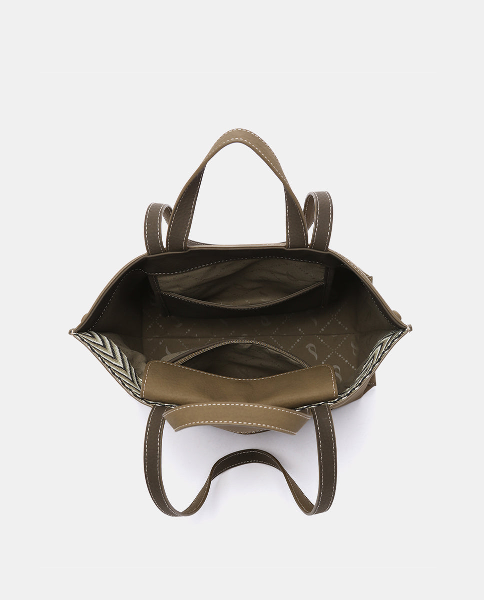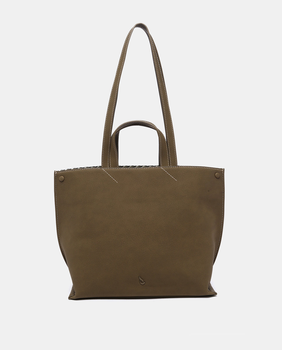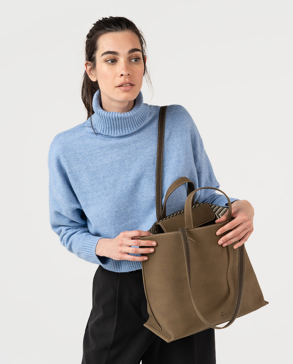 Bolso shopper de mujer elaborado en materiales reciclados. Un diseño de estilo informal y urbano, perfecto para acompañarte a la oficina o a una tarde de compras. Su tamaño amplio te permite llevar todo lo necesario para el día a día, incluso un ordenador portátil. Sus principales características son: