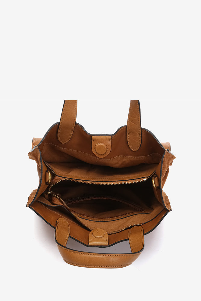 Bolso shopper en piel cognac