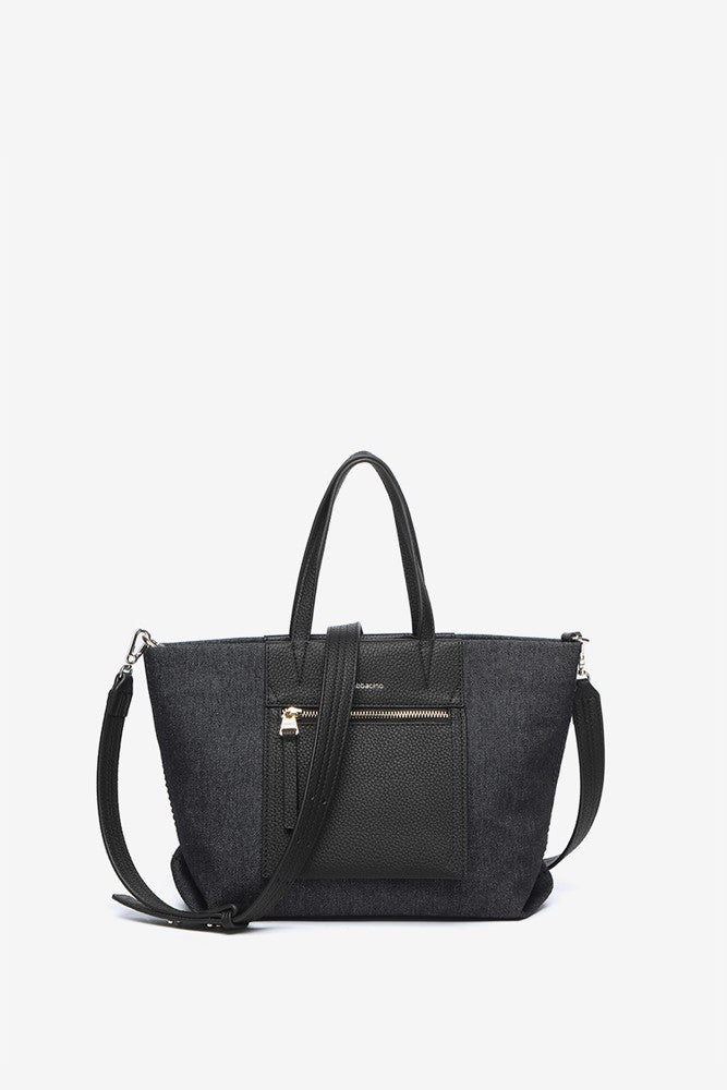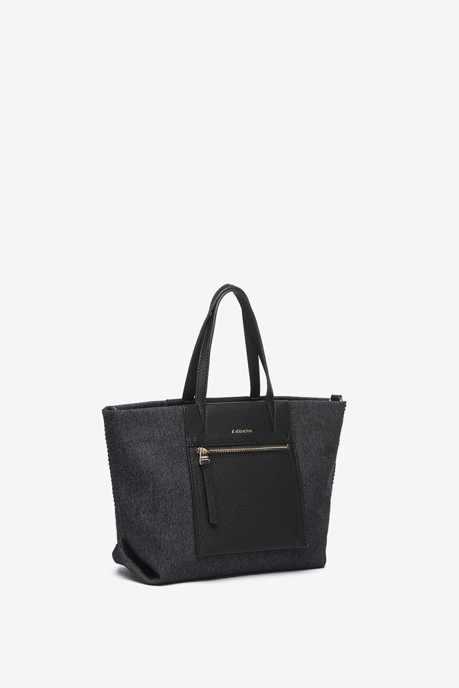 Bolso shopper pequeño en tejido de jeans negro