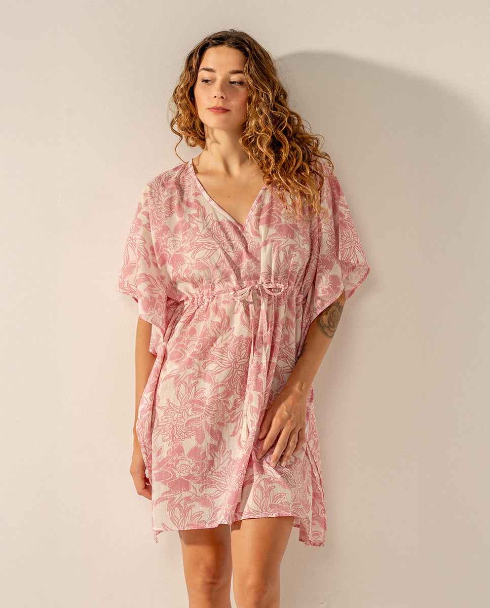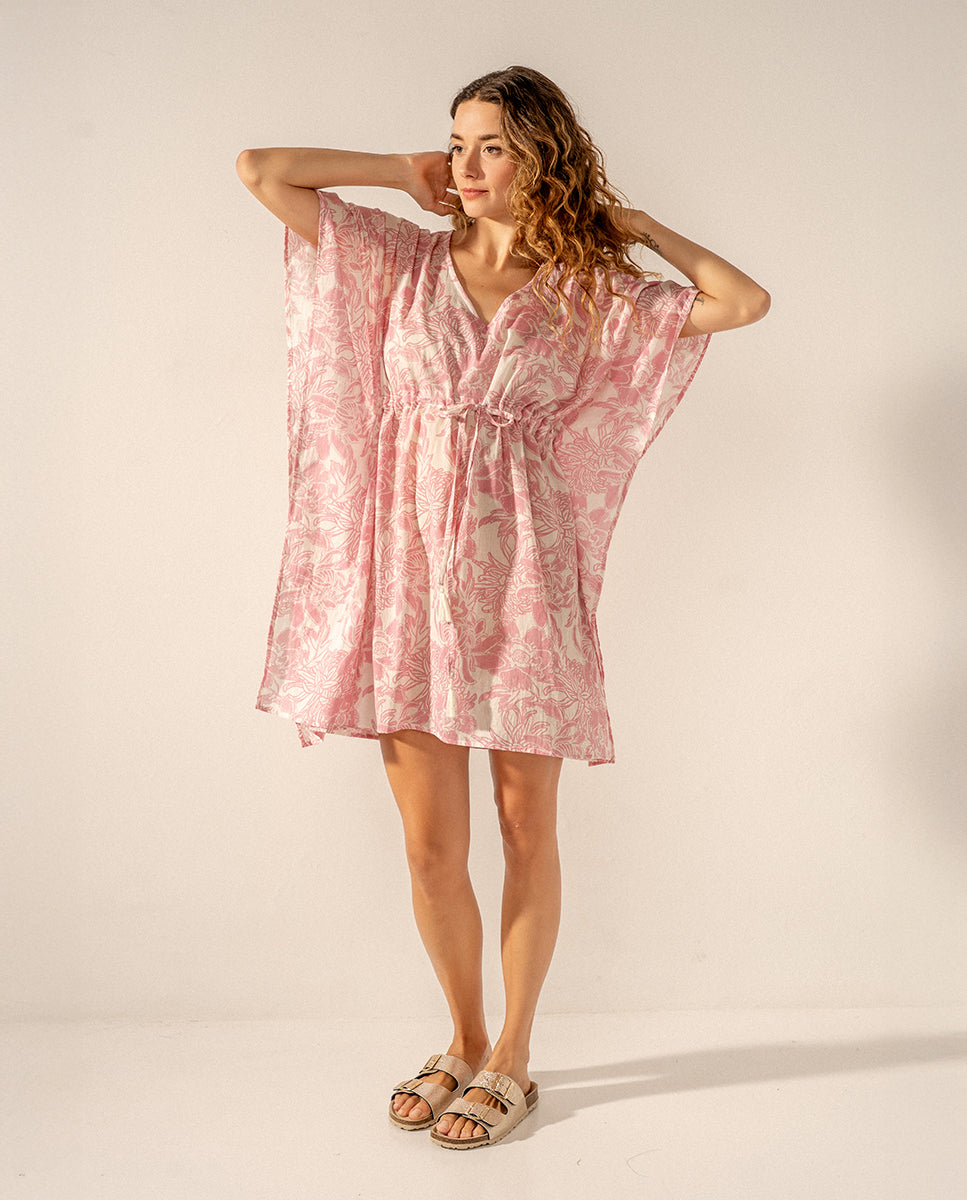 Caftán de algodón con estampado floral rosa