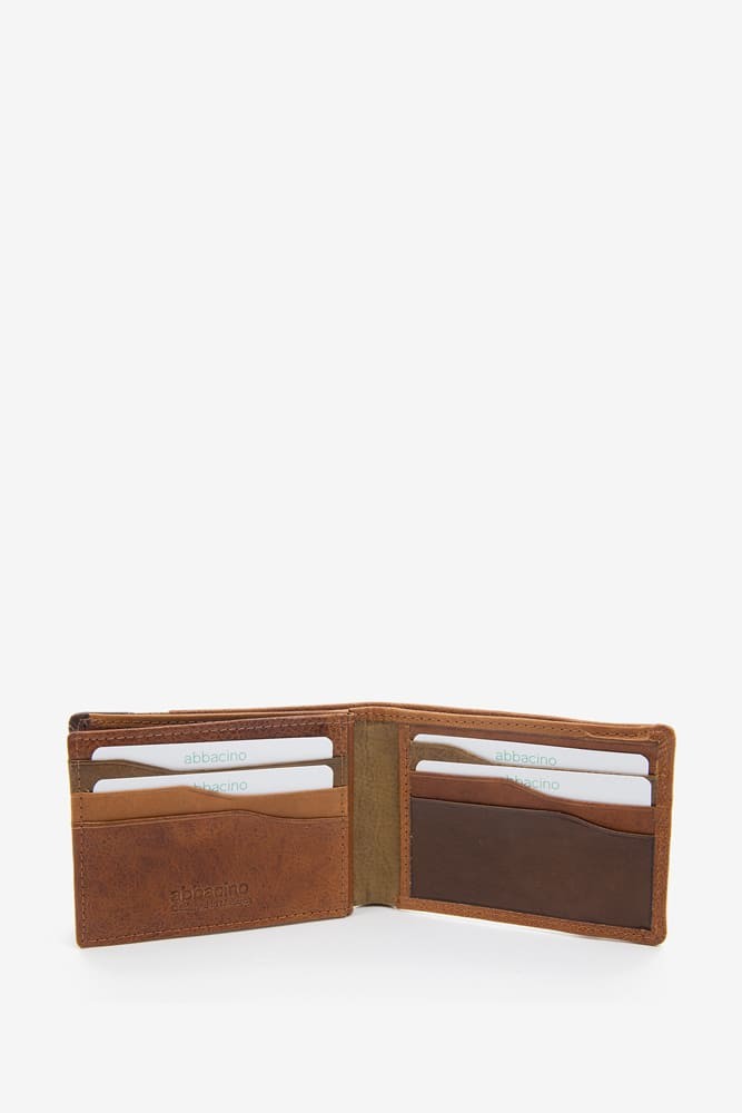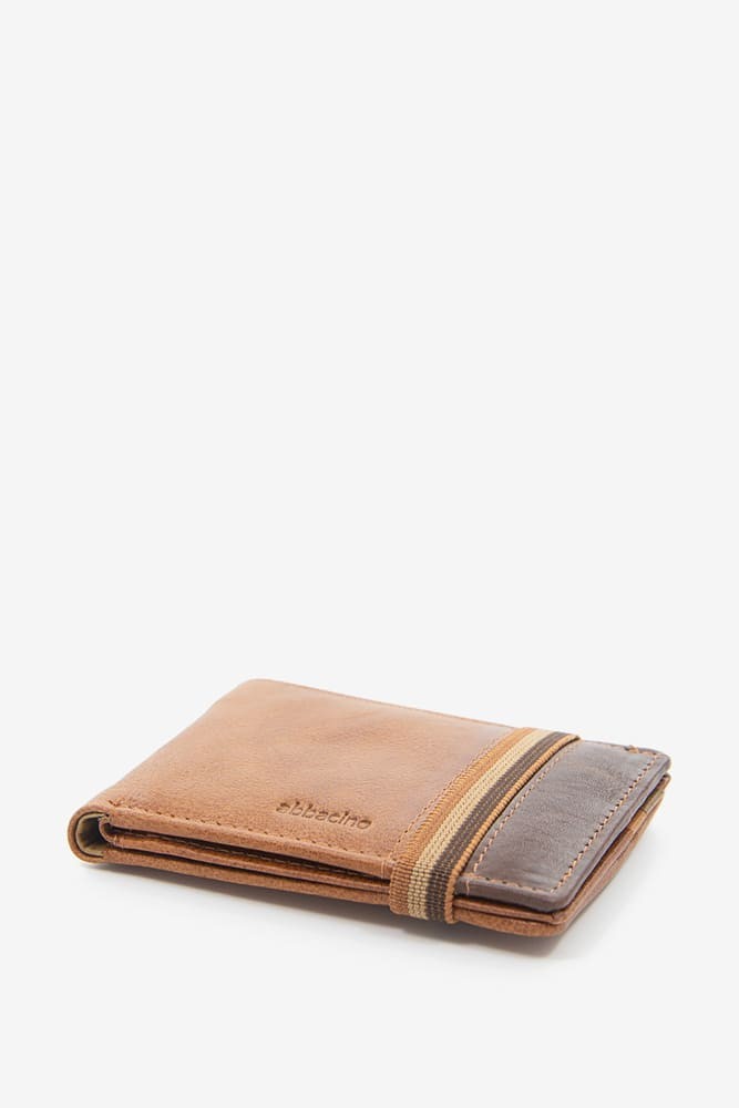 Billetero para caballero elaborado artesanalmente en piel de gran calidad. Este modelo de cartera americana para caballero ofrece los departamentos imprescindibles para billetes, monedas y tarjetas sin renunciar a un tamaño práctico. Diseño bicolor con un elástico tricolor en los mismos tonos. El logotipo Abbacino grabado completa este diseño de líneas atemporales.
