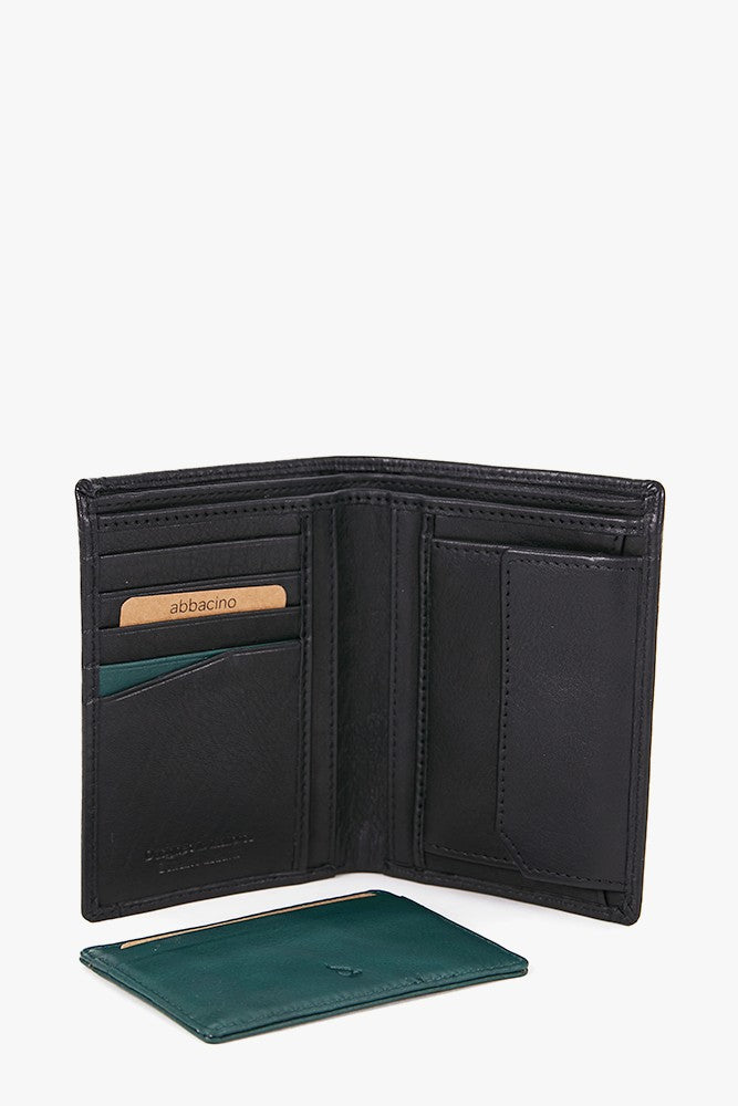 Billetera de hombre elaborada en piel bovina que incluye un tarjetero extraíble en su frontal. Este modelo combina dos tonalidades de color, una neutra y la otra más viva, y es muy completo.