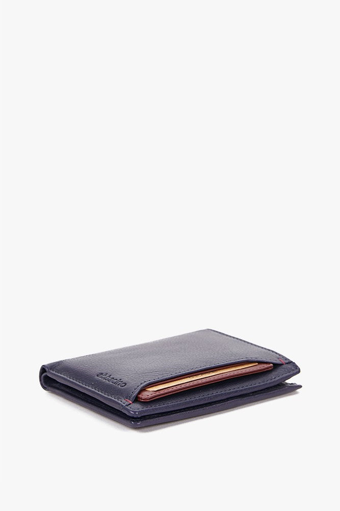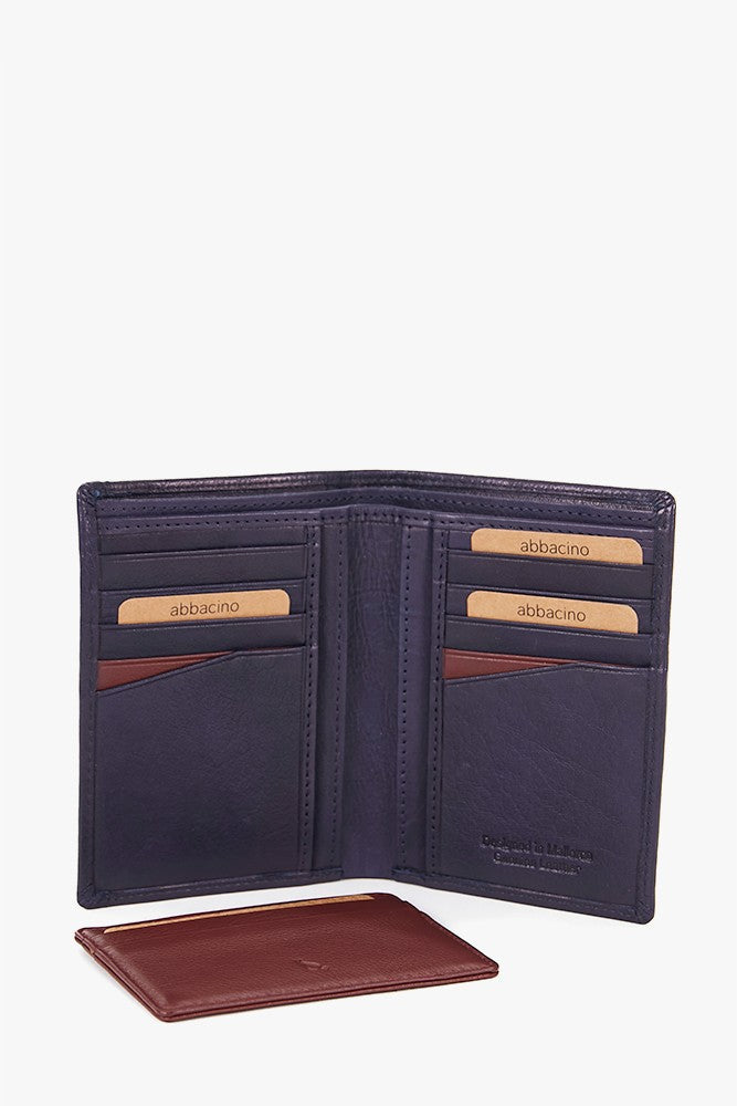 Billetera de hombre elaborada en piel bovina que incluye un tarjetero extraíble en su frontal. Este modelo combina dos tonalidades de color, una neutra y la otra más viva, y es muy completo.