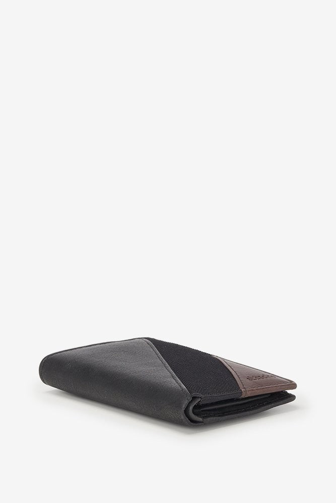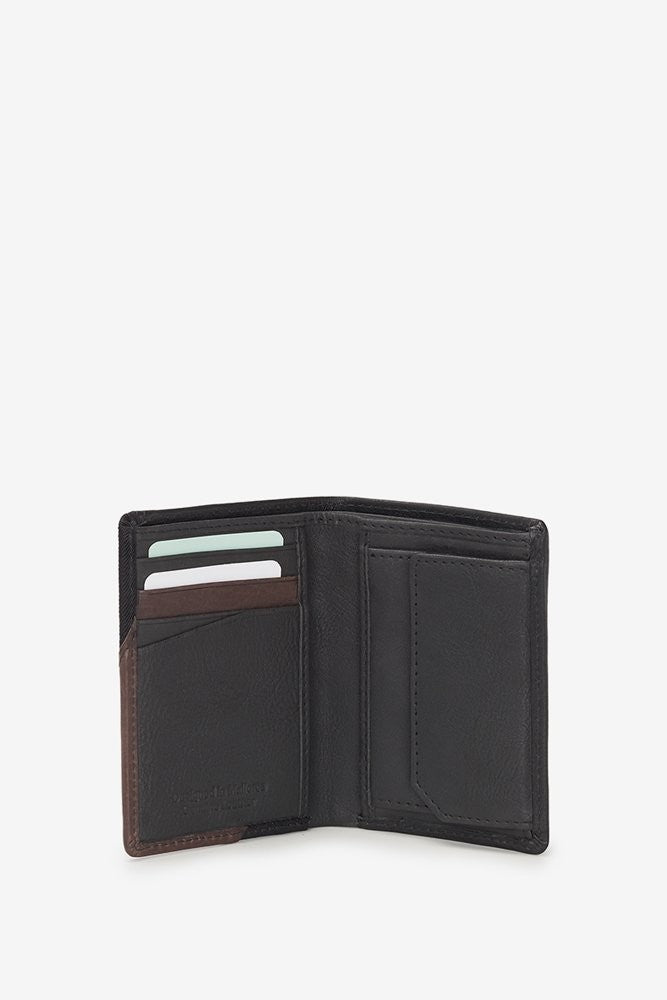 Cartera de hombre francesa de piel de alta gama. Confección artesanal. Diseño moderno y masculino en el que destaca la pieza de lona en medio y la elegante gama de color. Capacidad interior para muchas tarjetas, billetero y original bolsillo-monedero con solapa y broche. Logotipo de la marca grabado.