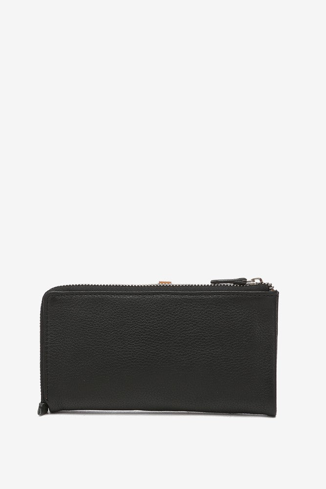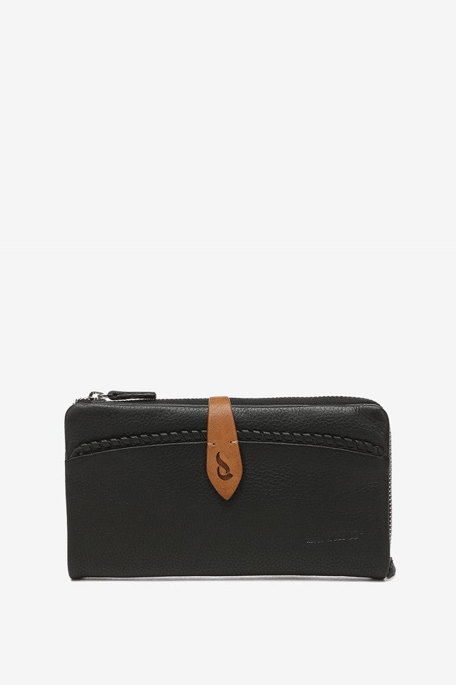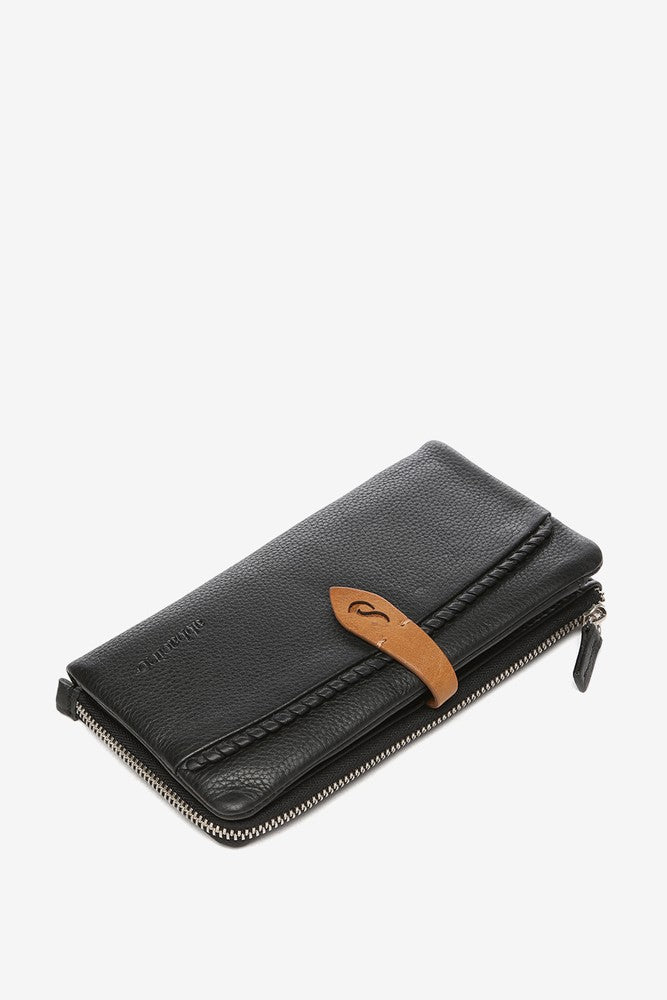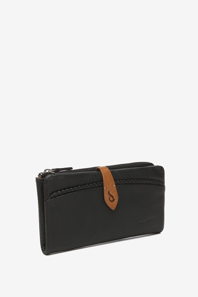 Cartera grande de mujer elaborada en piel Premium. Un diseño clásico y elegante en el que destacan detalles en color cuero. Combínala con tus maxi bolsos como shopper u hobos.