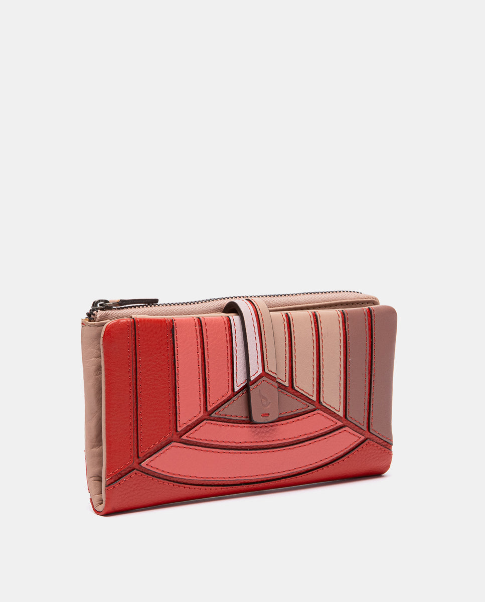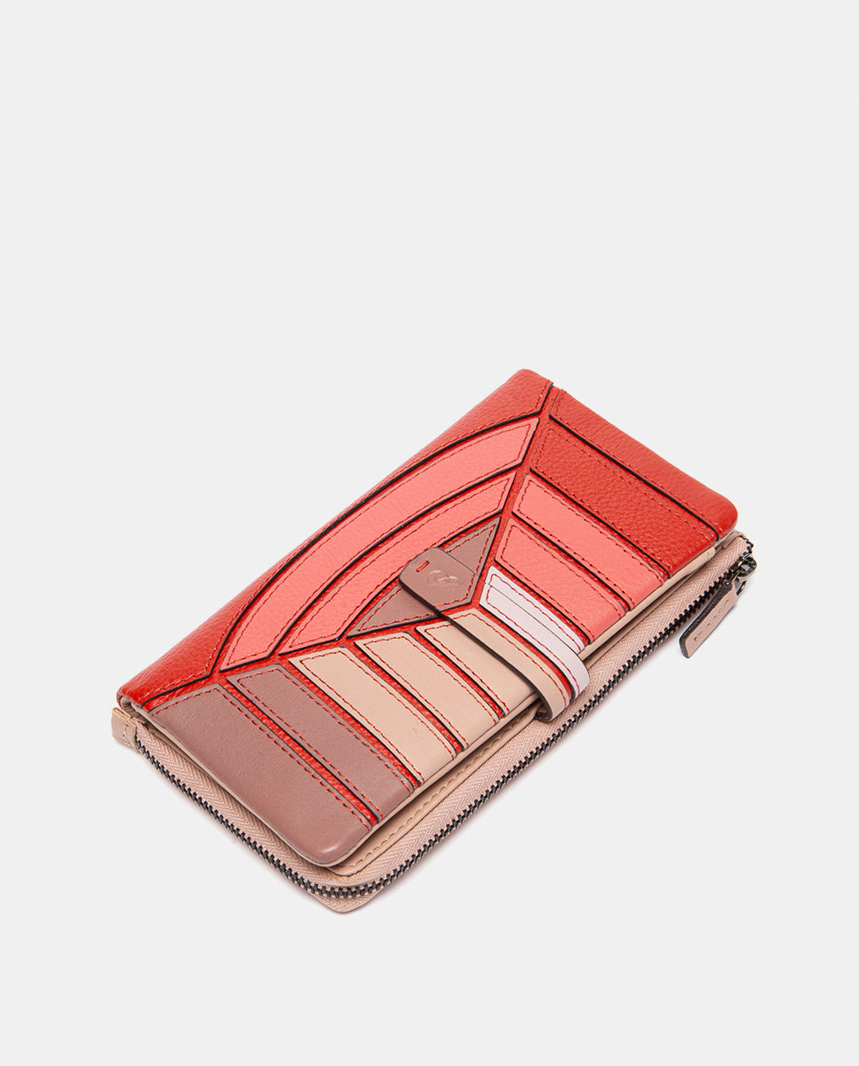 Cartera grande de piel con diseño de patchwork en cortes geométricos, cuidadosamente ensamblados para crear una composición única y artesanal. Sus principales características son:
