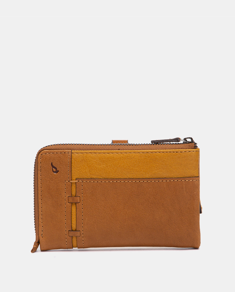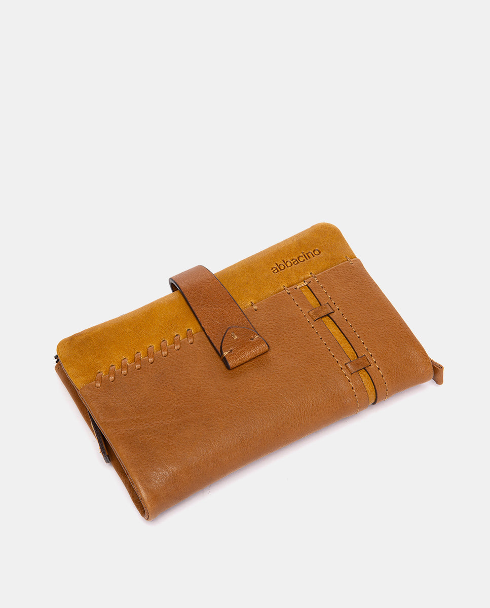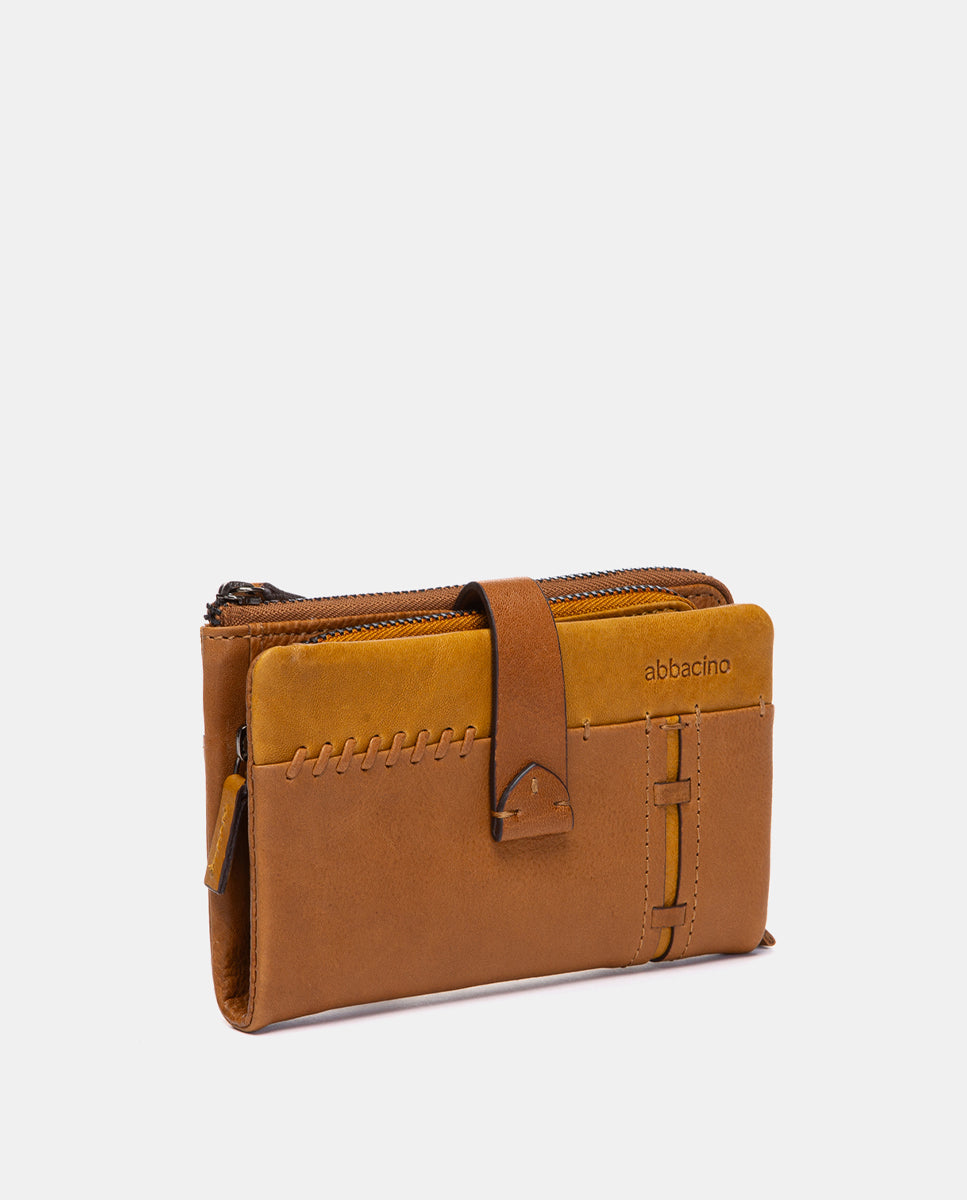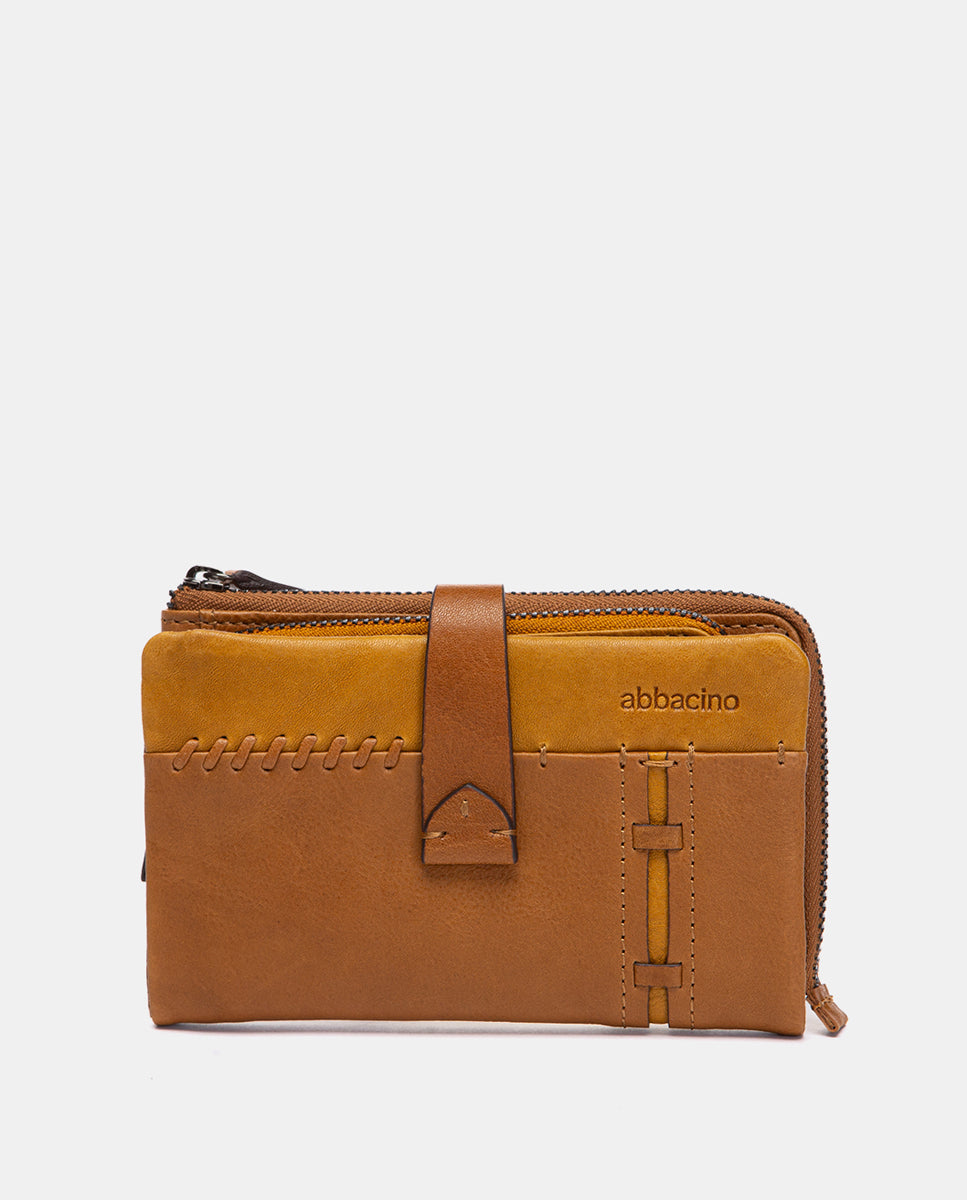 Cartera mediana en piel cognac