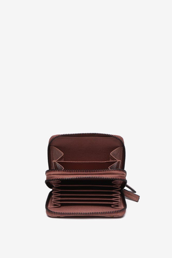 Cartera pequeña de mujer elaborada en piel Premium. Un modelo sencillo y clásico que destaca por la combinación de dos tonos de color perfectamente contrastados. Ideal para combinar con bolsos pequeños como formatos de fiesta.