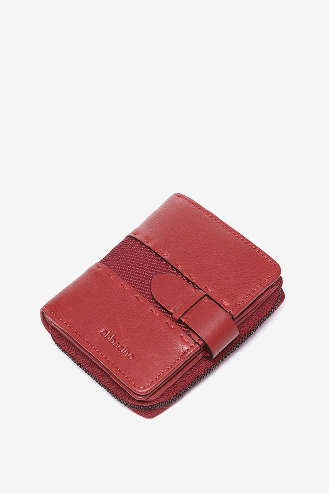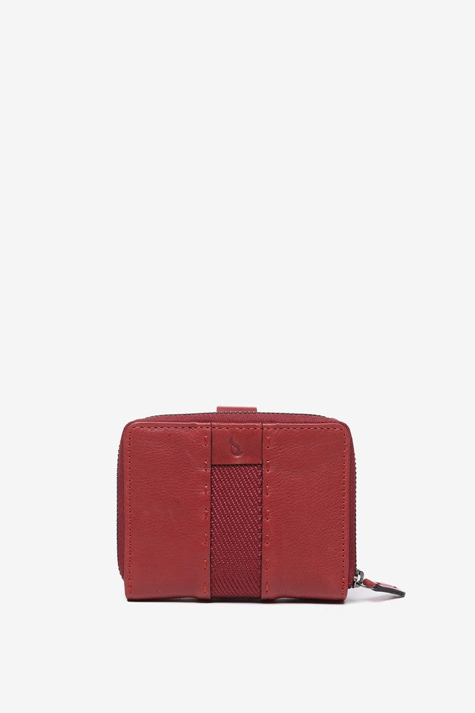 Cartera pequeña de mujer elaborada en piel sobre la que destaca una franja central de tejido y una bonita hebilla. Amplia y perfectamente distribuida, es el accesorio idóneo para combinar con todos tus bolsos. Sus principales características son: