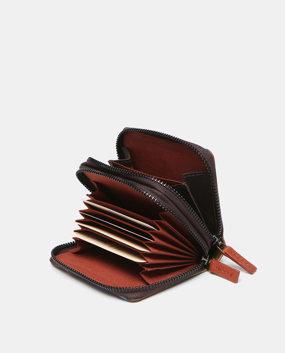 Cartera pequeña en formato acordeón elaborada en piel Premium. Un diseño estampado con un llamativo print asbtracto propio de la firma. Teñida en colores otoñales, es una apuesta segura para aportar un toque original a todos tus looks. Sus principales características son: