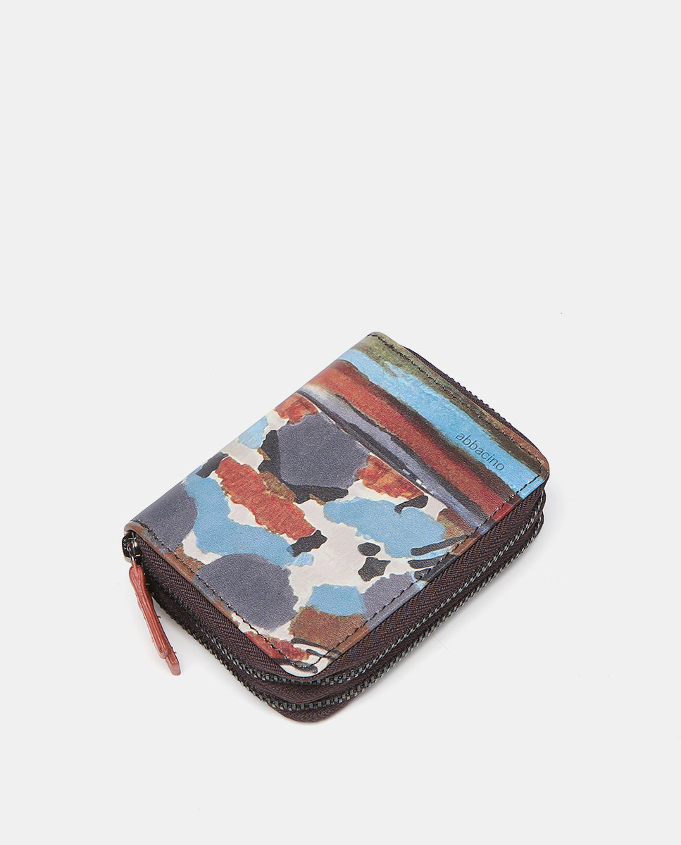 Cartera pequeña en piel con estampado multicolor
