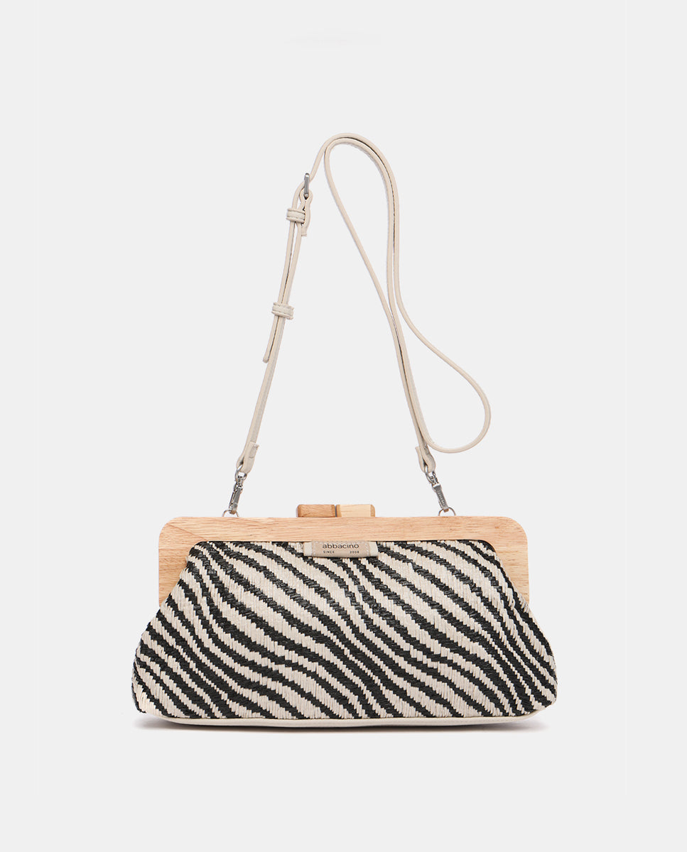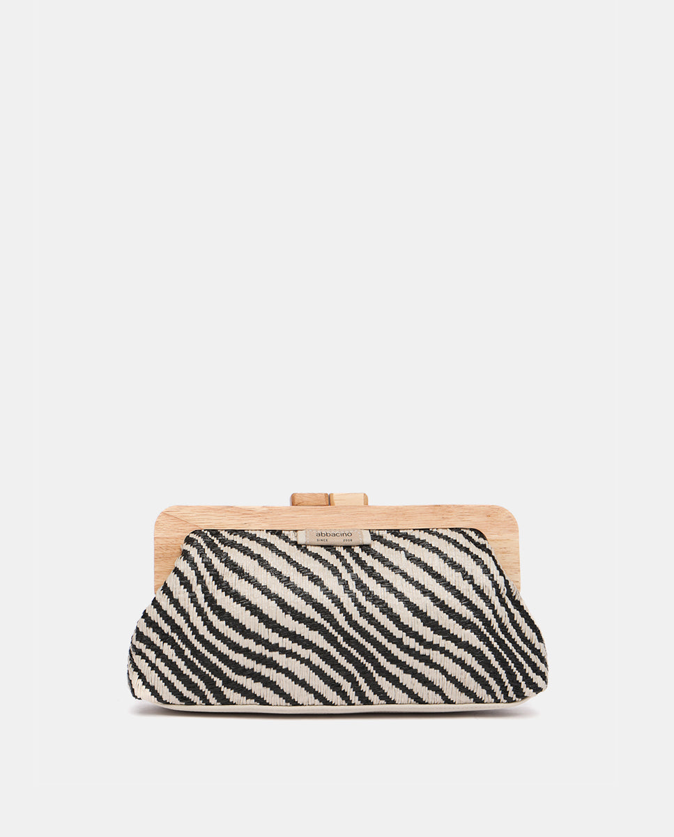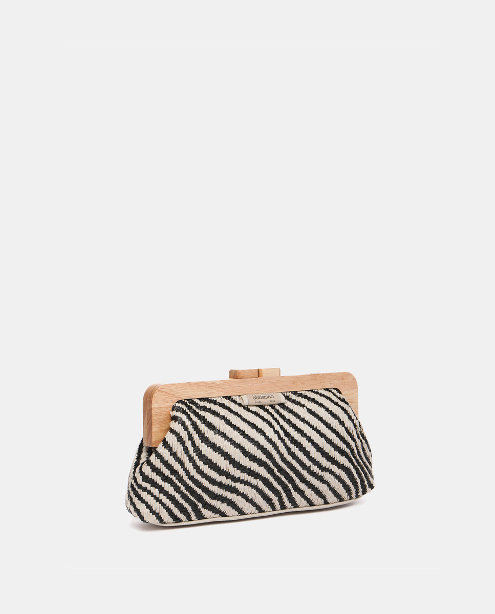 Bolso clutch realizado en una bonita combinación trenzada y madera. Este modelo con estampado animal print destaca por su elegancia y su estilo sofisticado, ideal para acompañarte en eventos especiales. Sus principales características son: