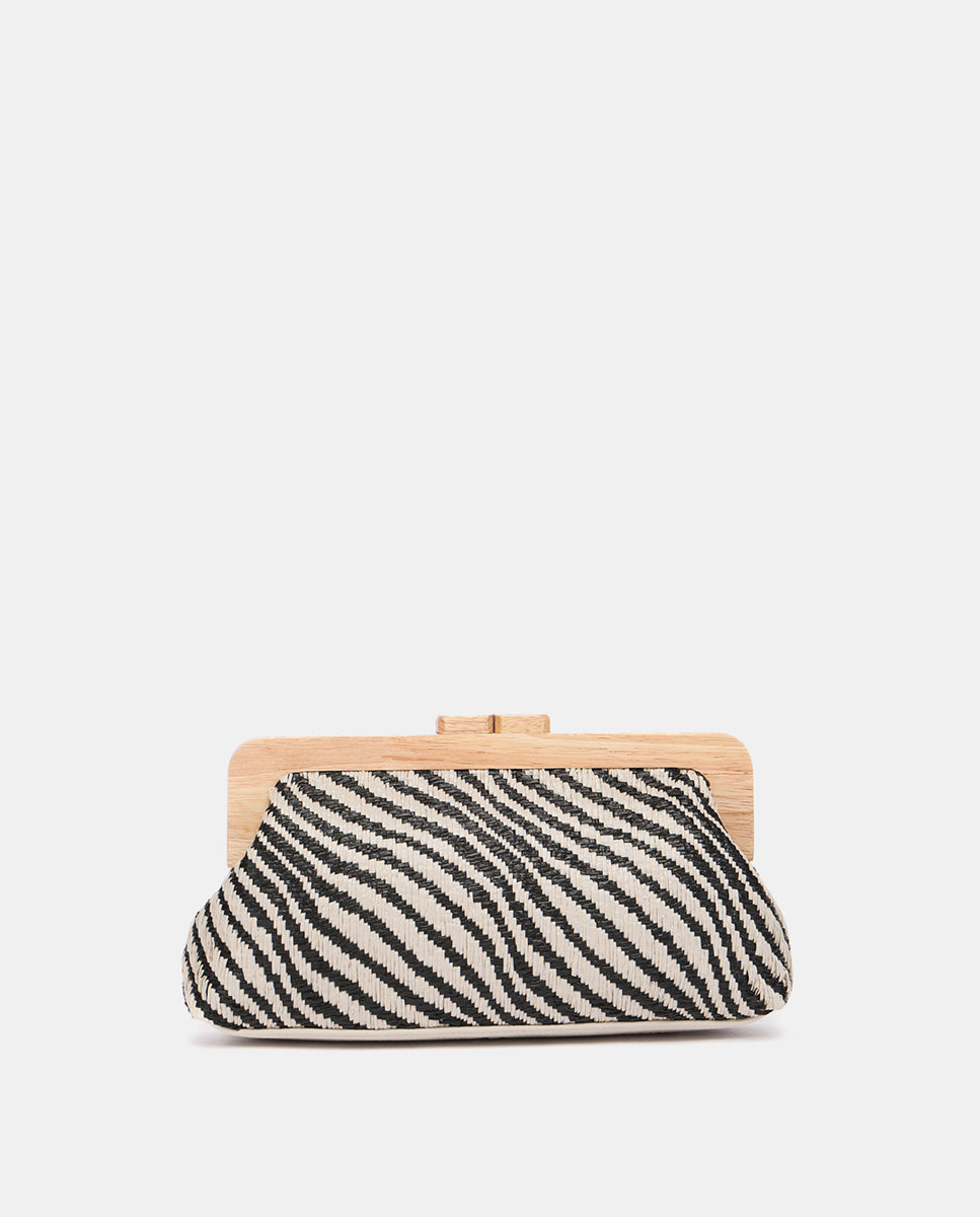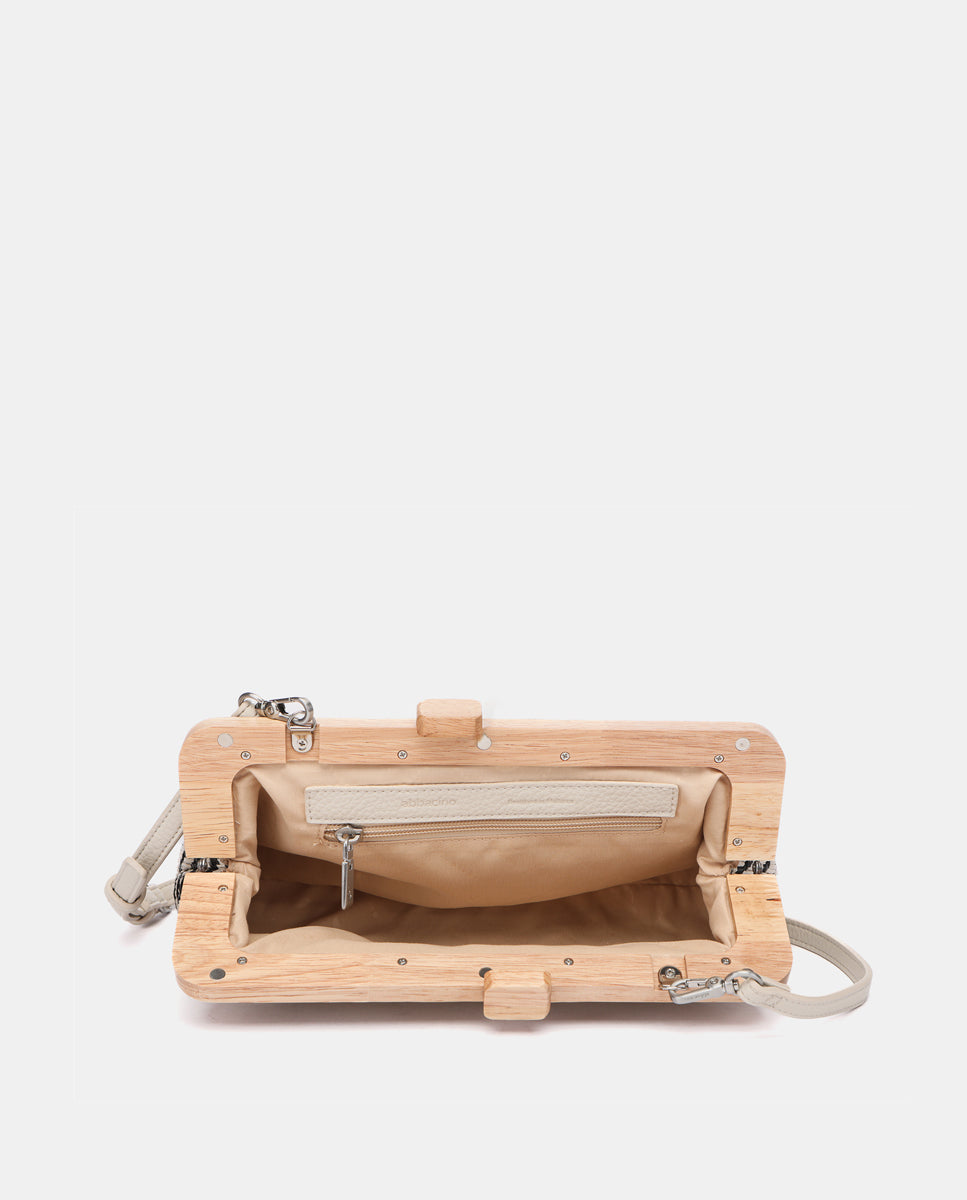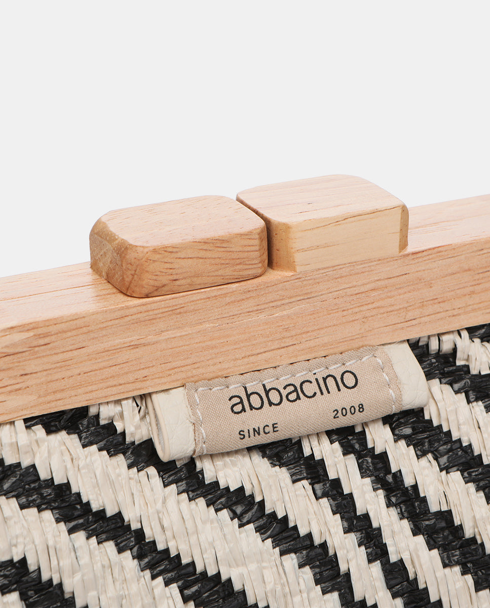 Bolso clutch realizado en una bonita combinación trenzada y madera. Este modelo con estampado animal print destaca por su elegancia y su estilo sofisticado, ideal para acompañarte en eventos especiales. Sus principales características son:
