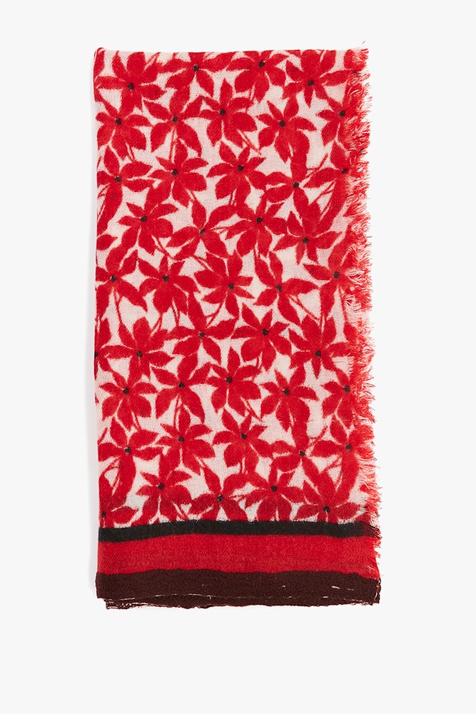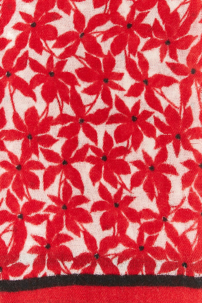 Pañuelo de mujer de lana con estampado floral mini en rojo