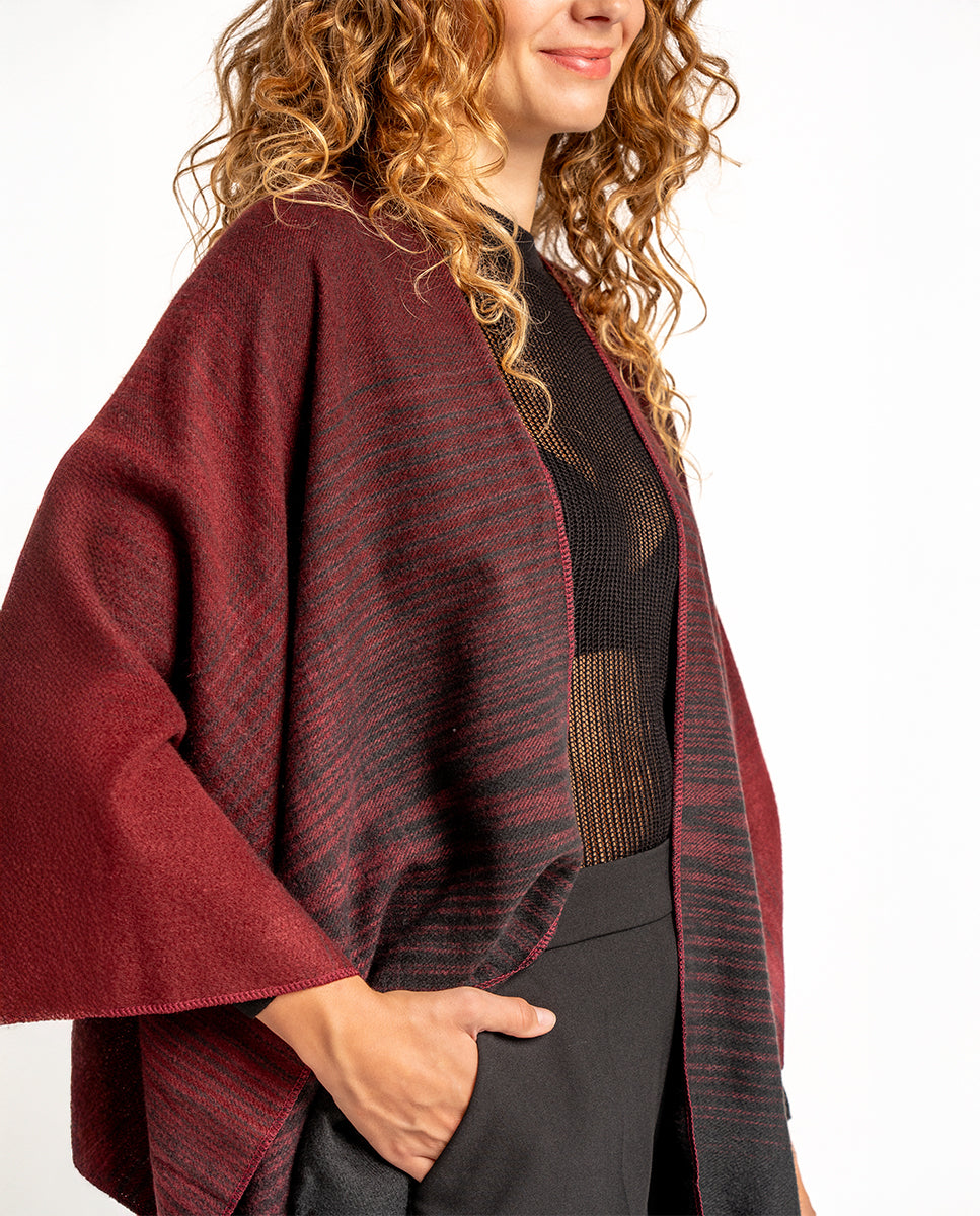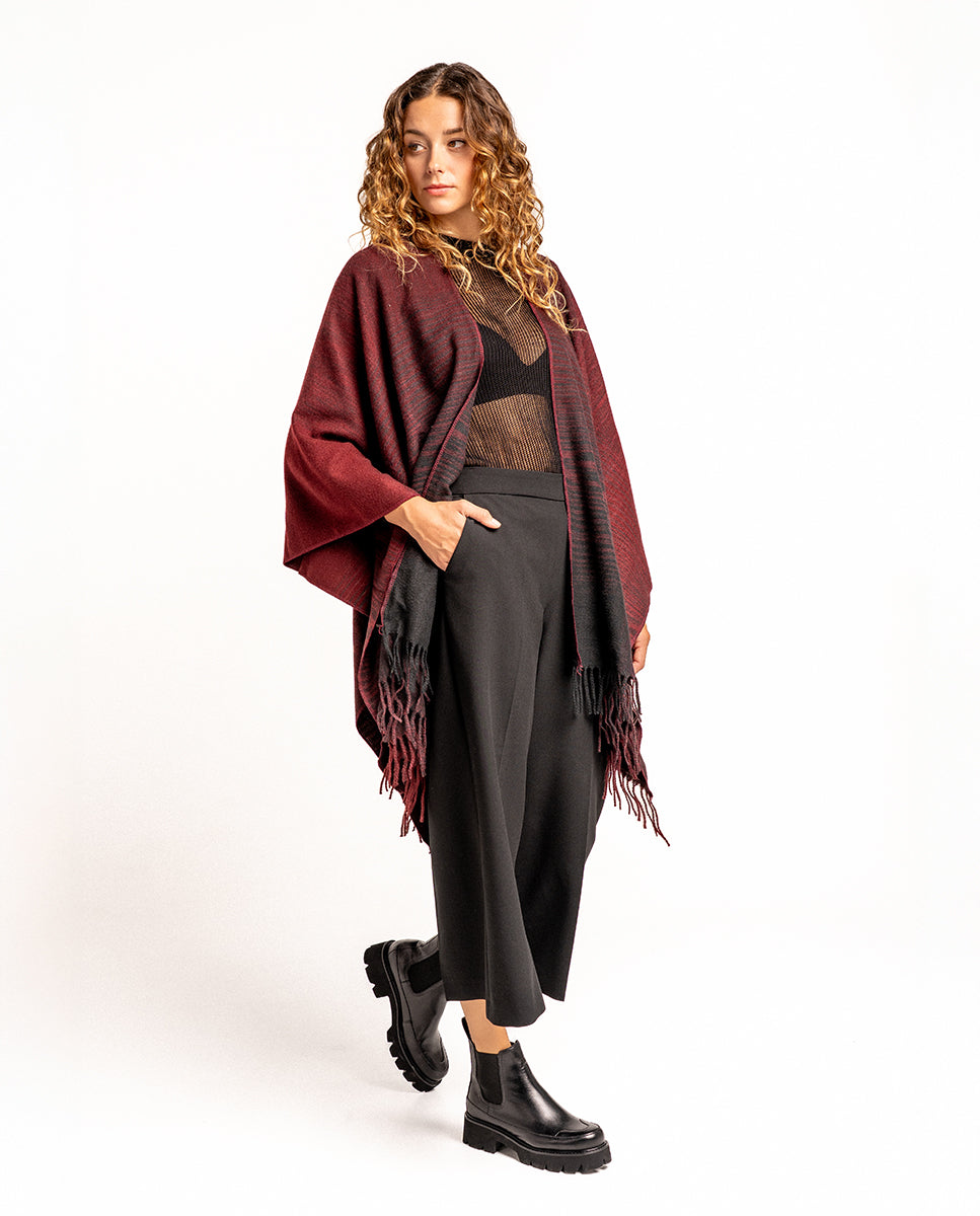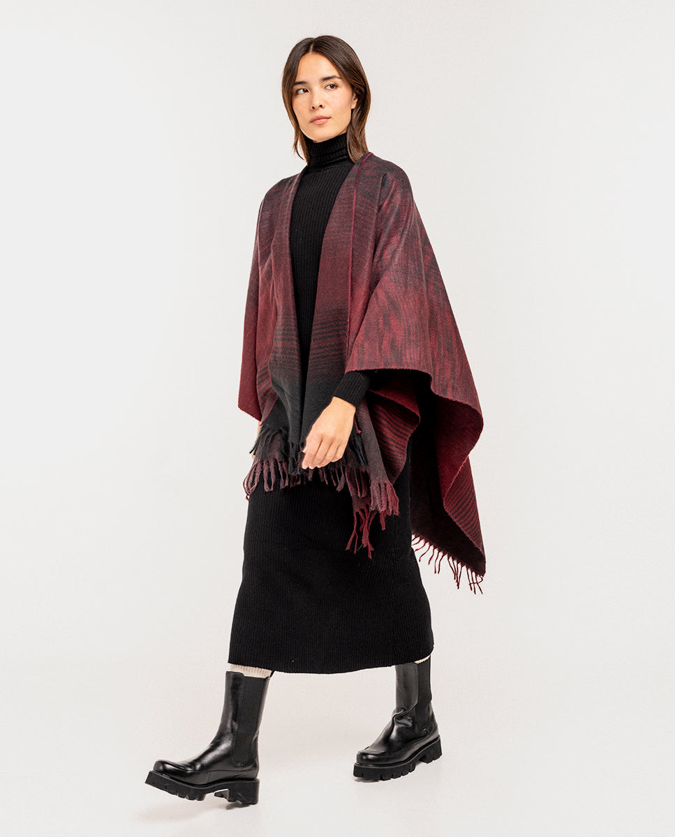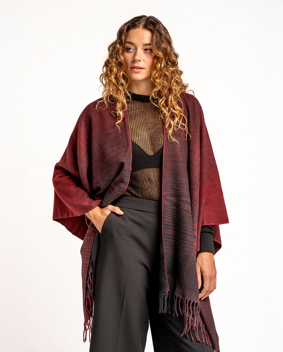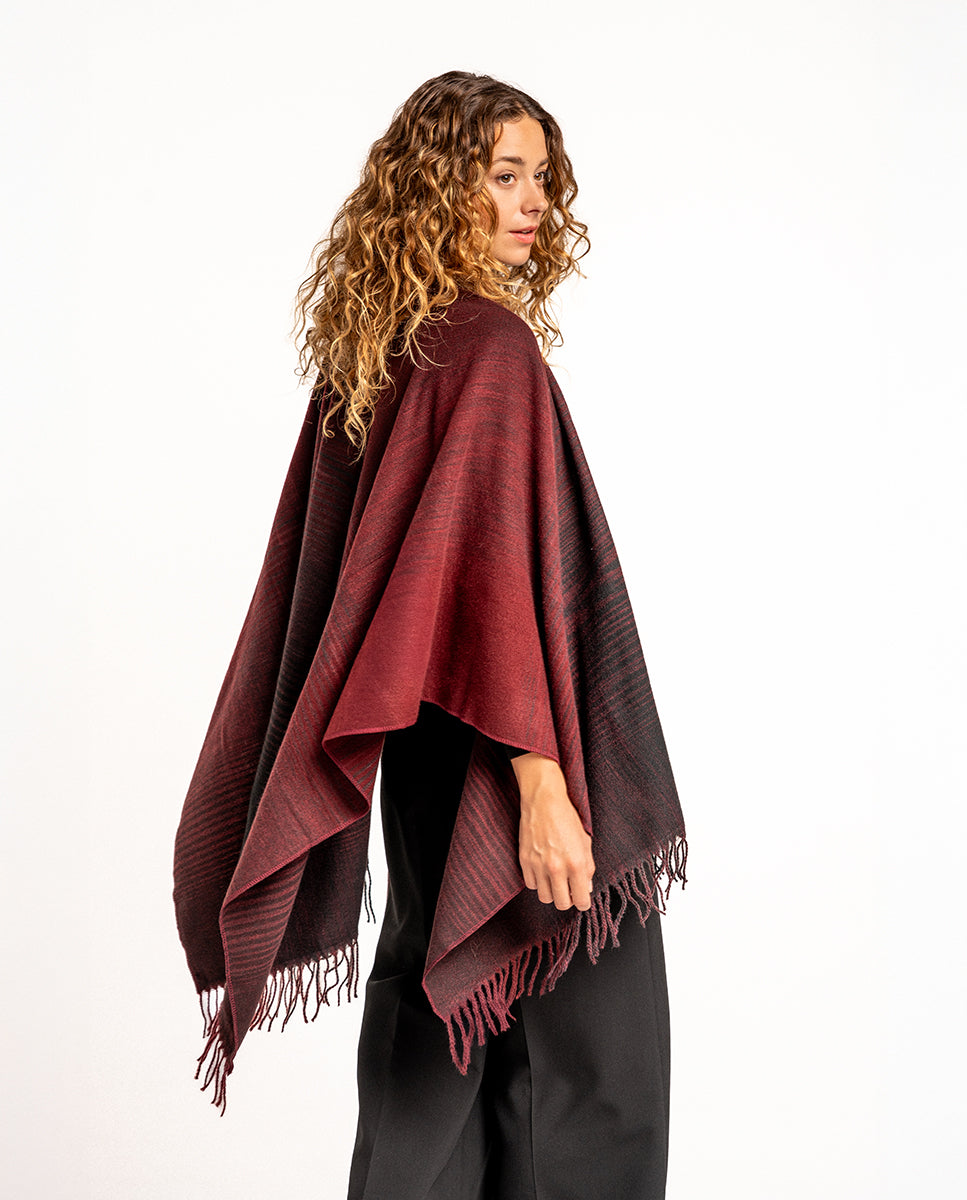 Poncho de mujer con degradado, que combina diferentes tonos. Su tejido, goza de un tacto ultra suave y es muy calentito, perfecto para los días de otoño e invierno. Sus extremos con flecos, le aportan un aire muy casual. Muy combinable, se convertirá en un imprescindible para los días de frío.