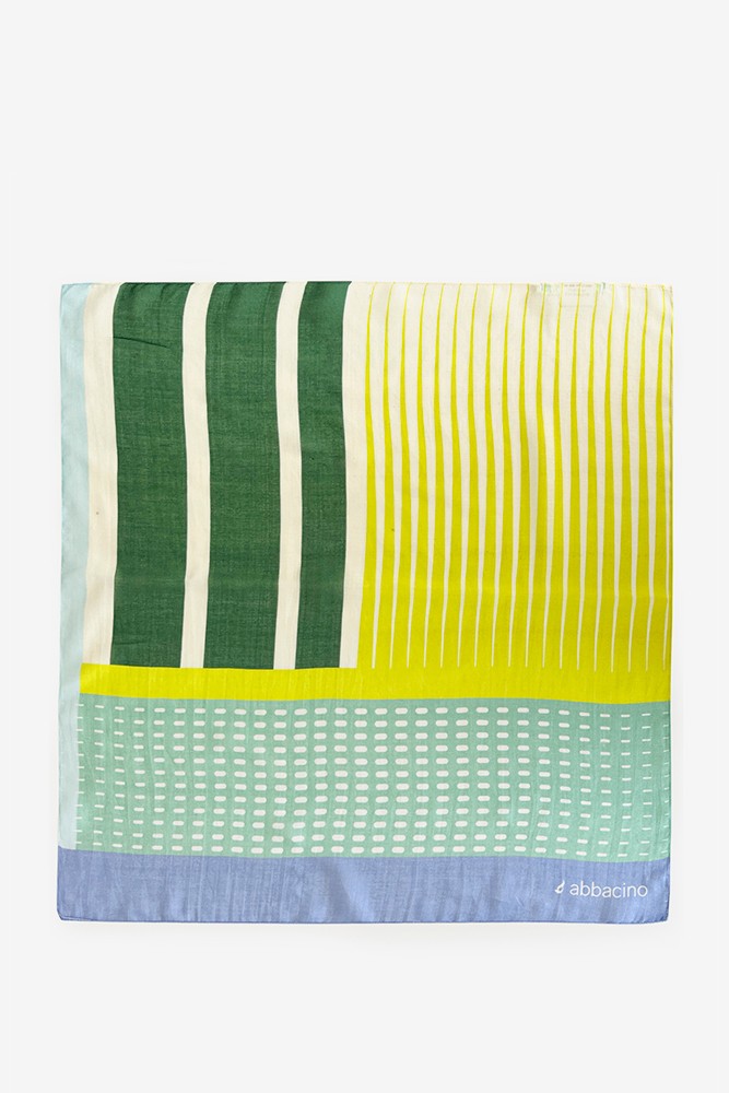 Damentuch aus Viskose mit einem schönen geometrischen Muster. Ein Design, das durch seine Originalität und die Kombination lebendiger und energischer Farben besticht, perfekt für die Sommermonate. Die fransigen Kanten verleihen ihm einen modernen und lässigen Stil. Der Stoff ist sehr leicht und frisch.