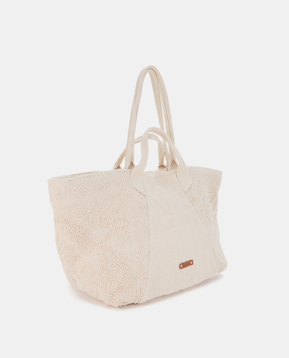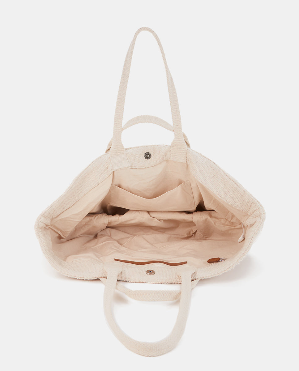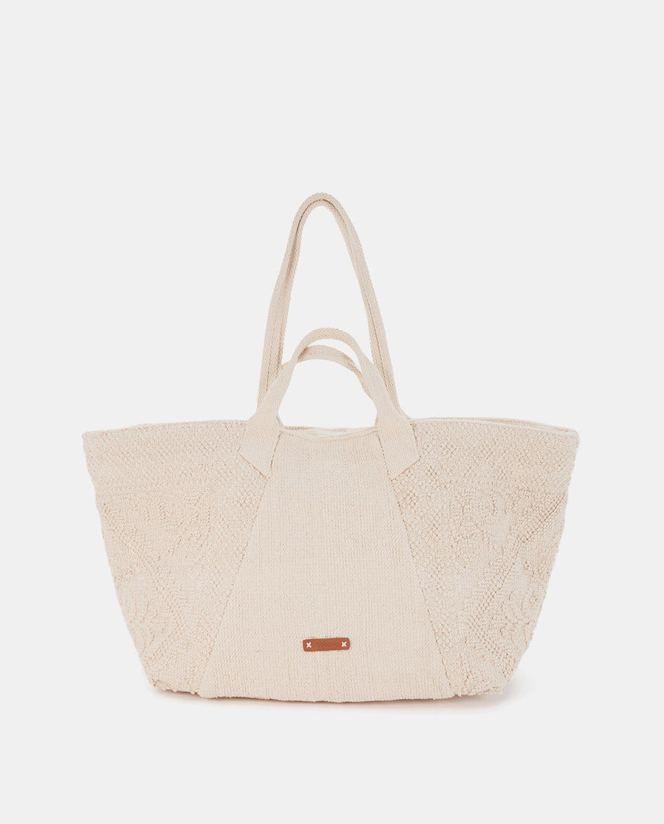 Beige bestickte Strandtasche aus Baumwolle