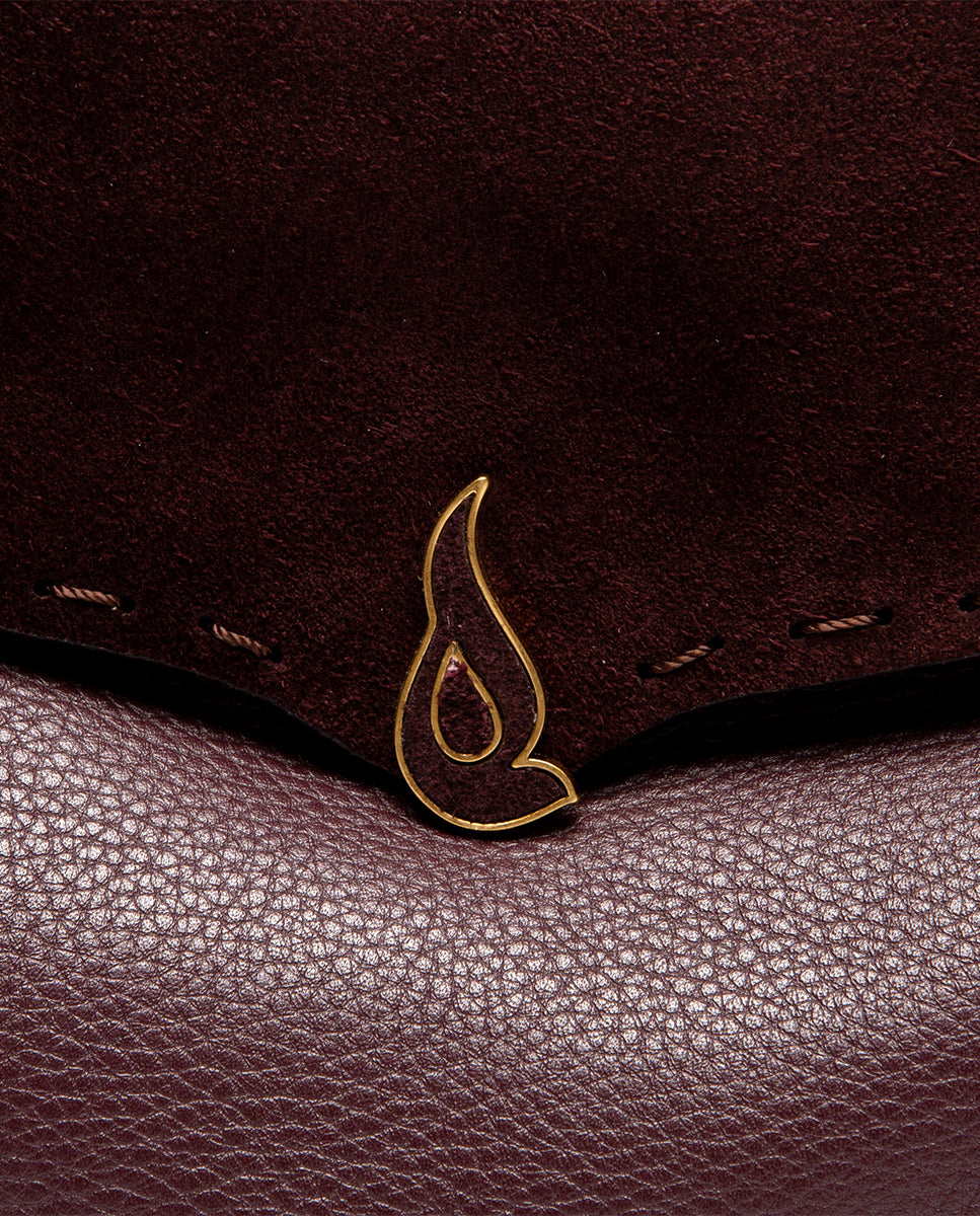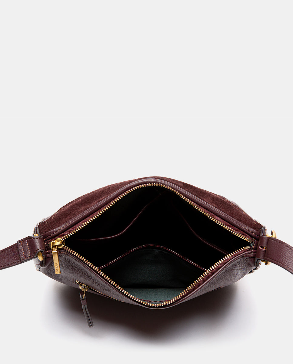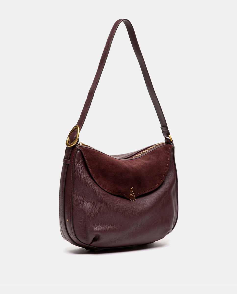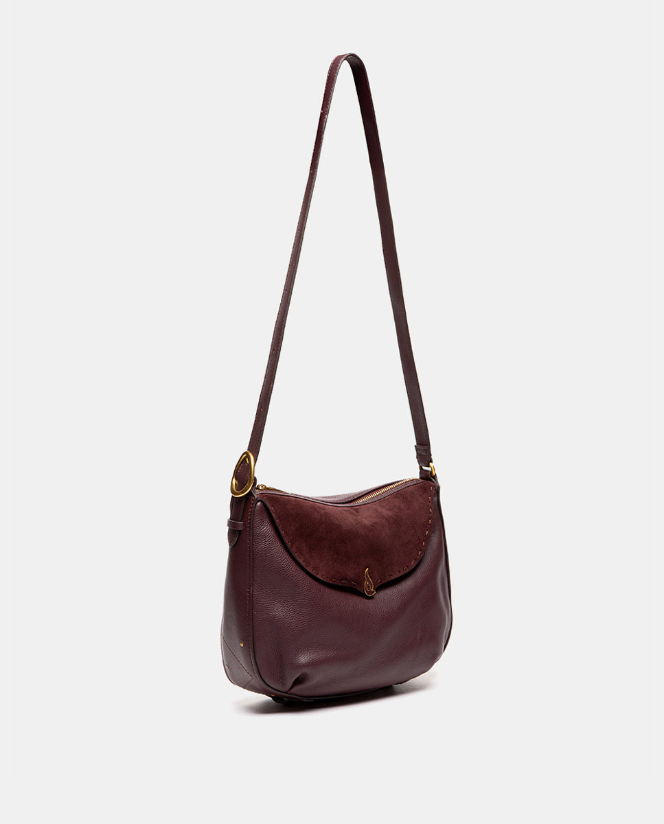Umhängetasche, die Haut und Wildleder mischt und einen raffinierten Texturkontrast erreichen, ideal für den täglichen Gebrauch. Seine Hauptmerkmale sind:
