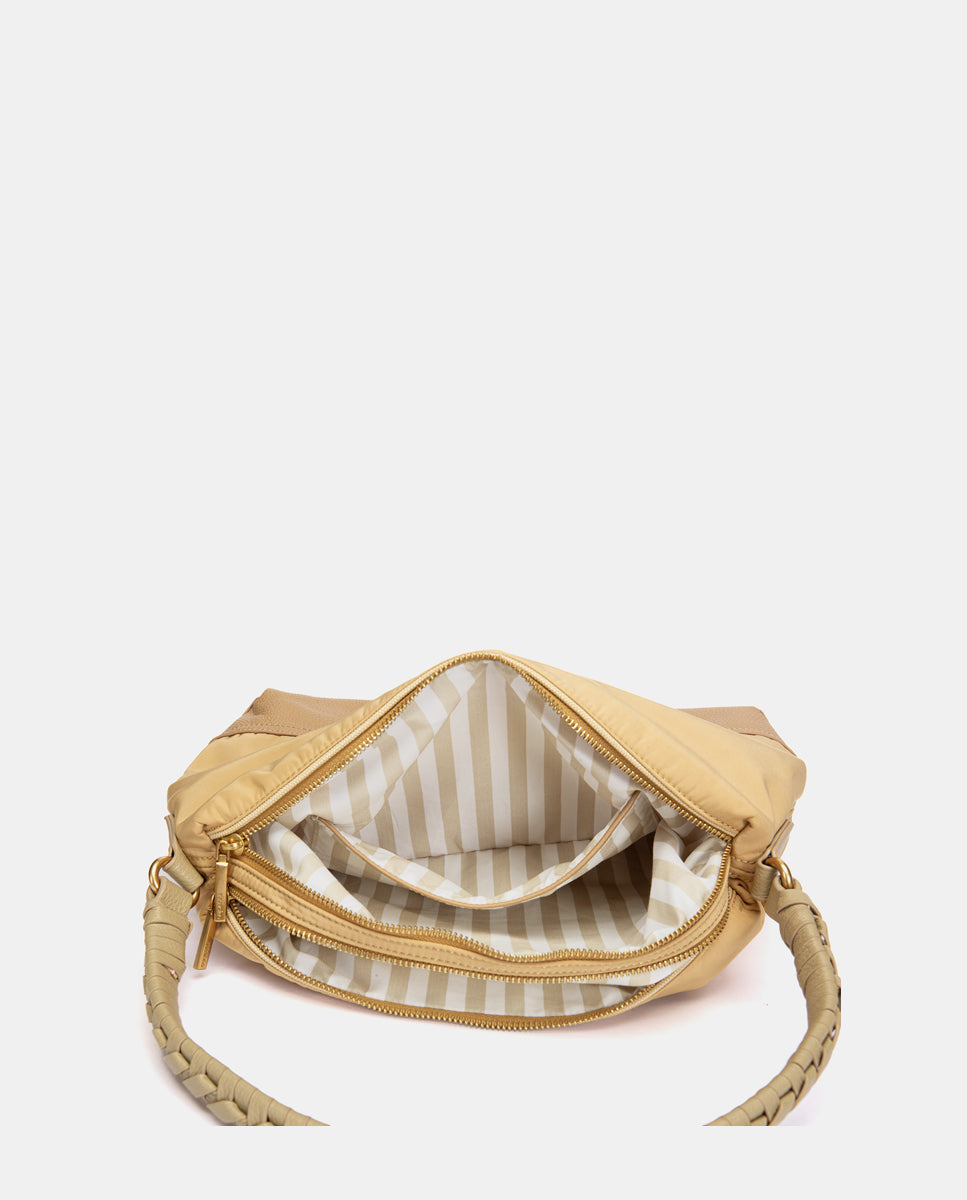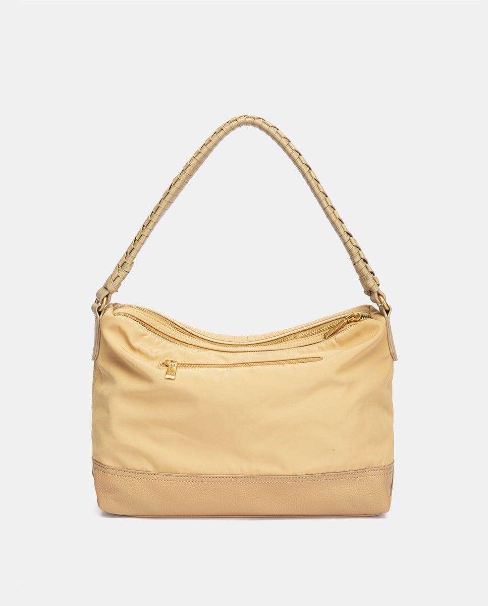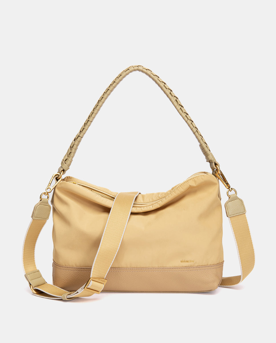 • Bequemer Schultergurt mit geflochtenem Detail, kombiniert mit einem abnehmbaren Textilschultergurt.