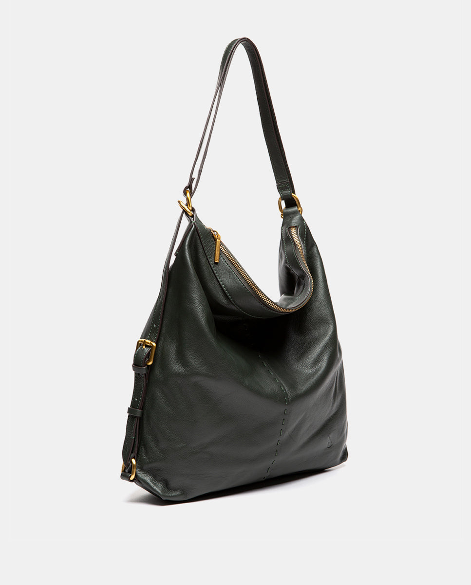 Multifunktionaler Beutel in grünem Leder
