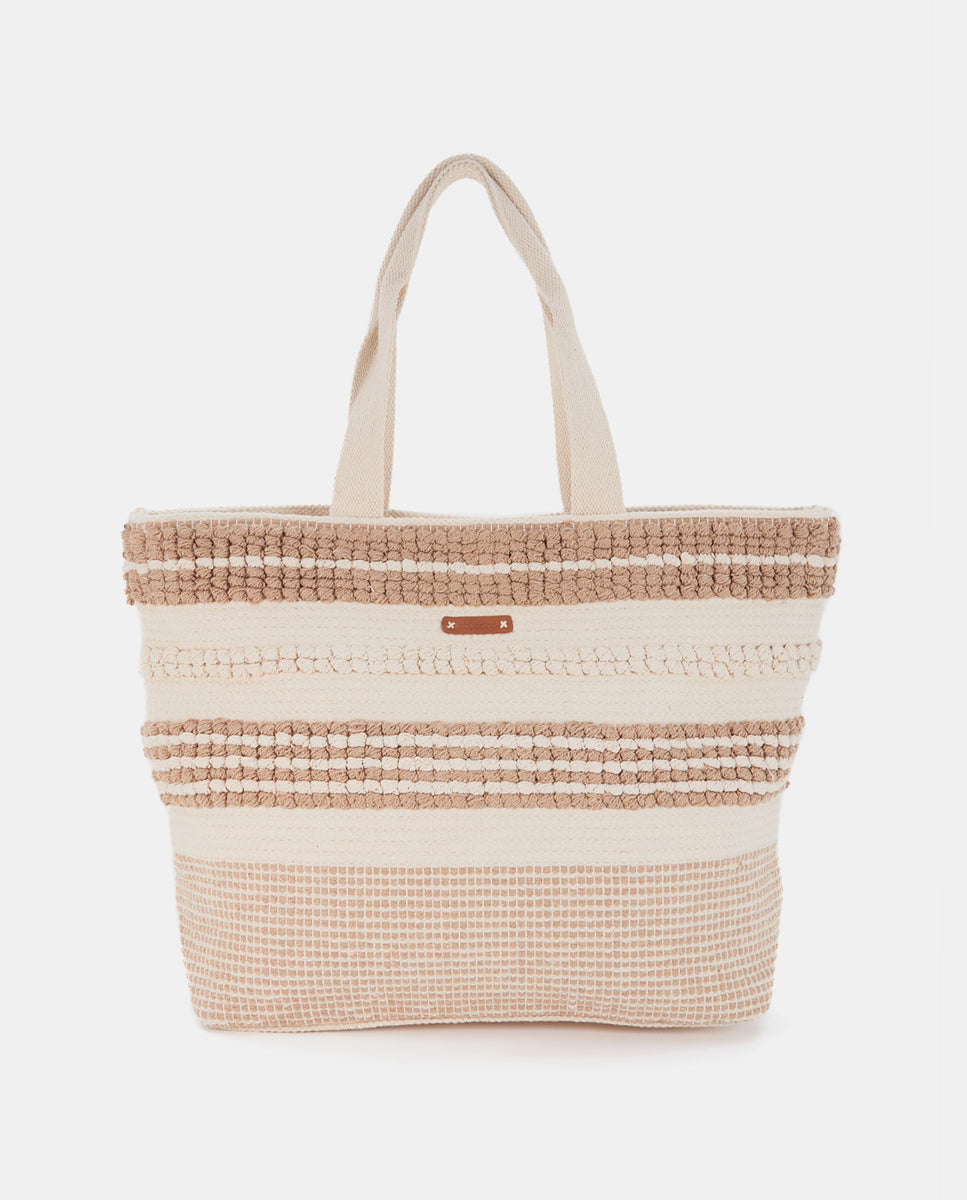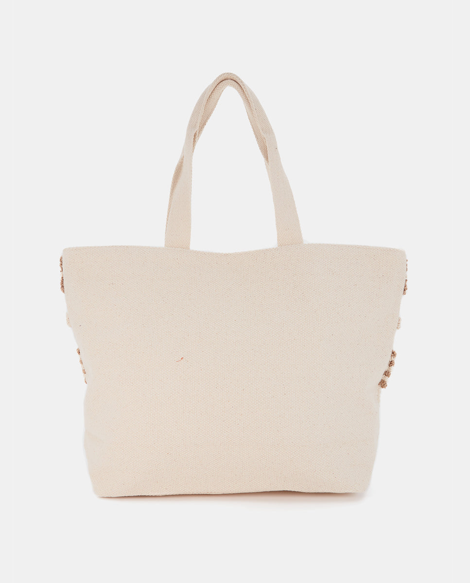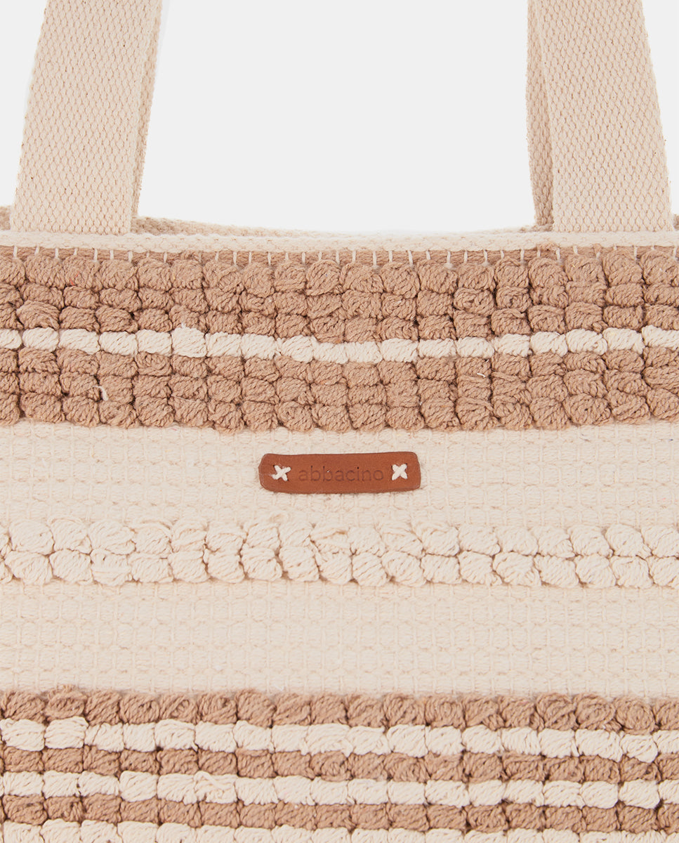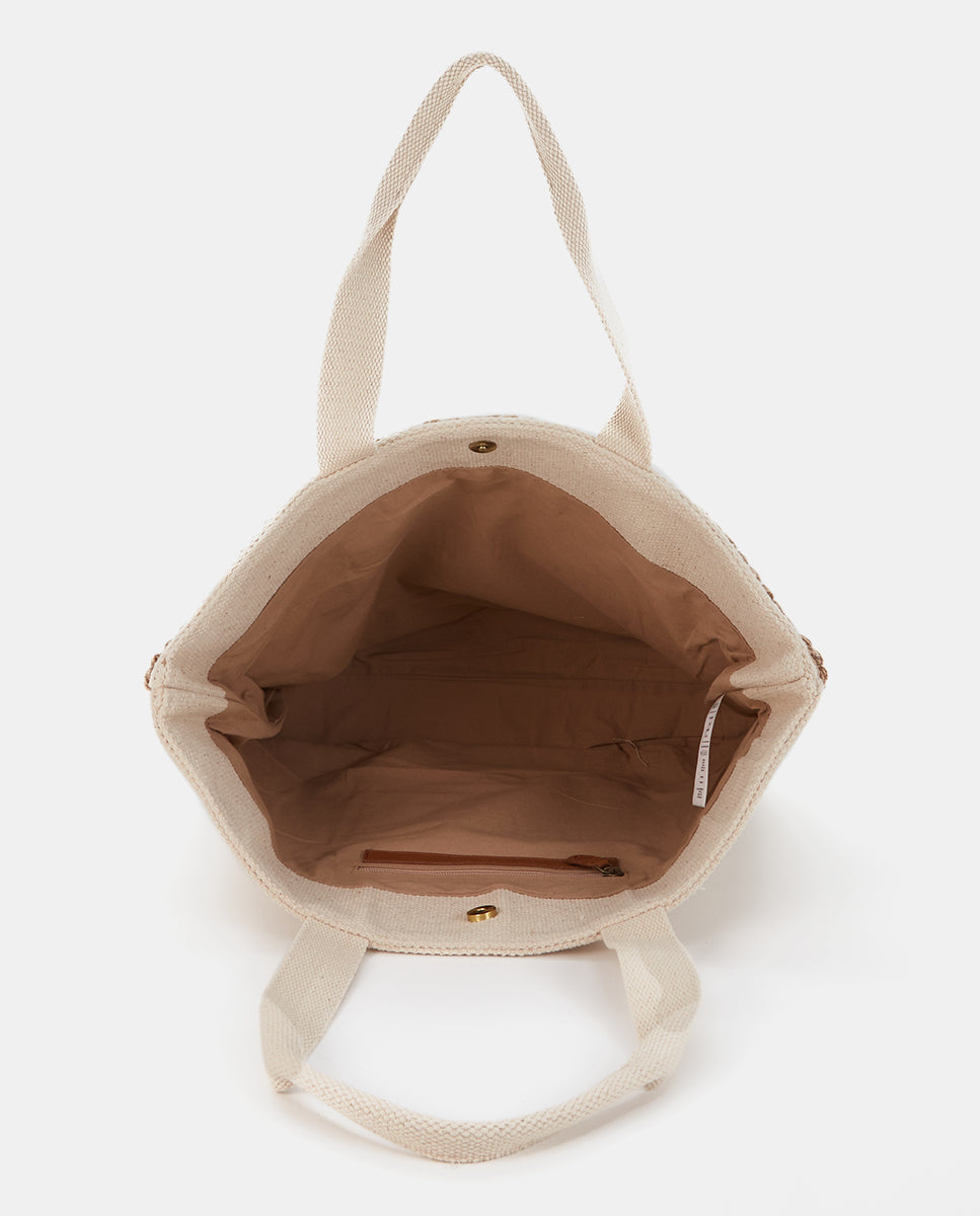 Beige bestickte Strandtragetasche