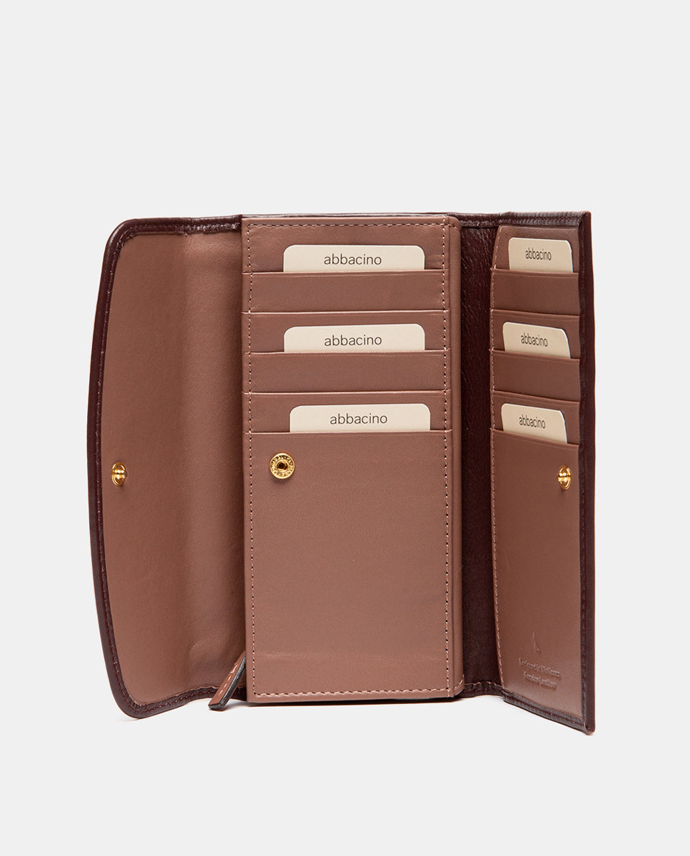 Großes Frauenportfolio in Premium -Leder, das sich durch den Verschluss mit einer Klappe und einem kontrastierenden Streifen darstellt. Elegant und funktional, ideal für diejenigen, die Kapazität und Stil suchen. Seine Hauptmerkmale sind:
