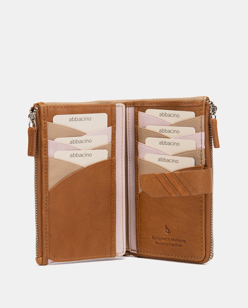 Mittelgroße Geldbörse aus cognacfarbenem Leder