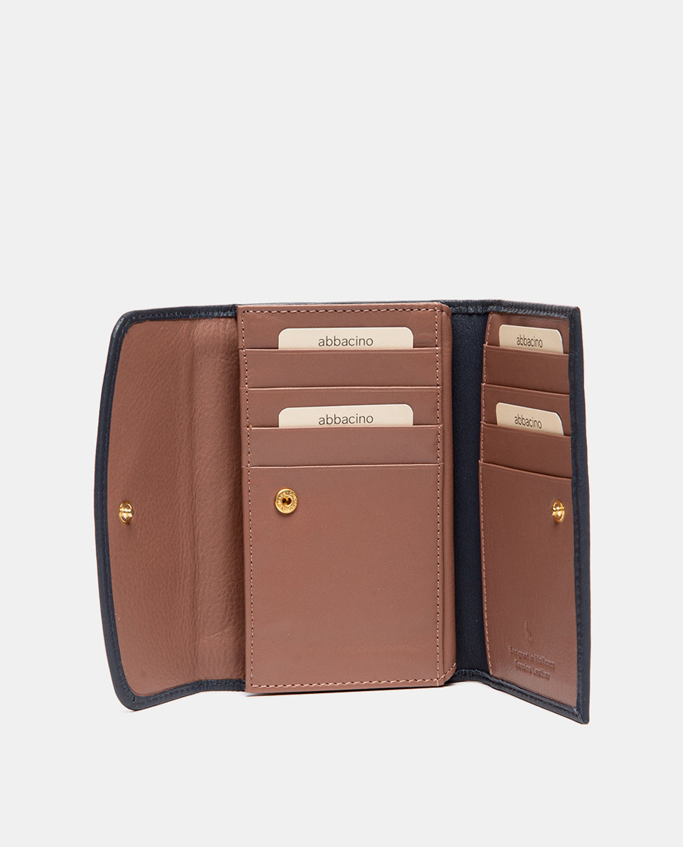 Das mittlere Frauenportfolio in Premium -Leder, das sich durch den Verschluss mit einer Klappe und einem kontrastierenden Streifen darstellt. Elegant und funktional, perfekt für Tag für Tag. Seine Hauptmerkmale sind: