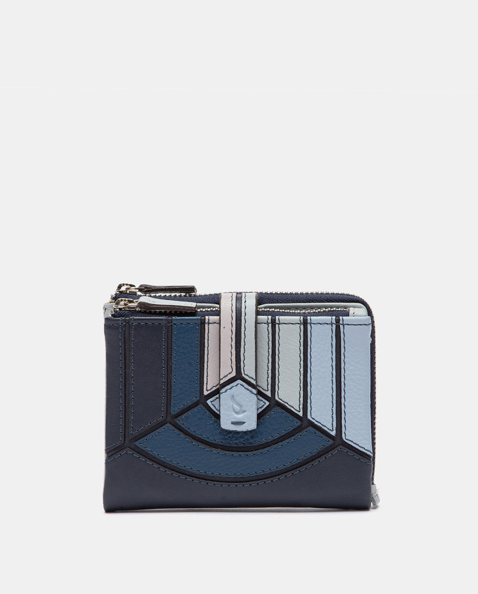 Cartera pequeña de piel con diseño de patchwork en cortes geométricos, cuidadosamente ensamblados para crear una composición única y artesanal. Sus principales características son: