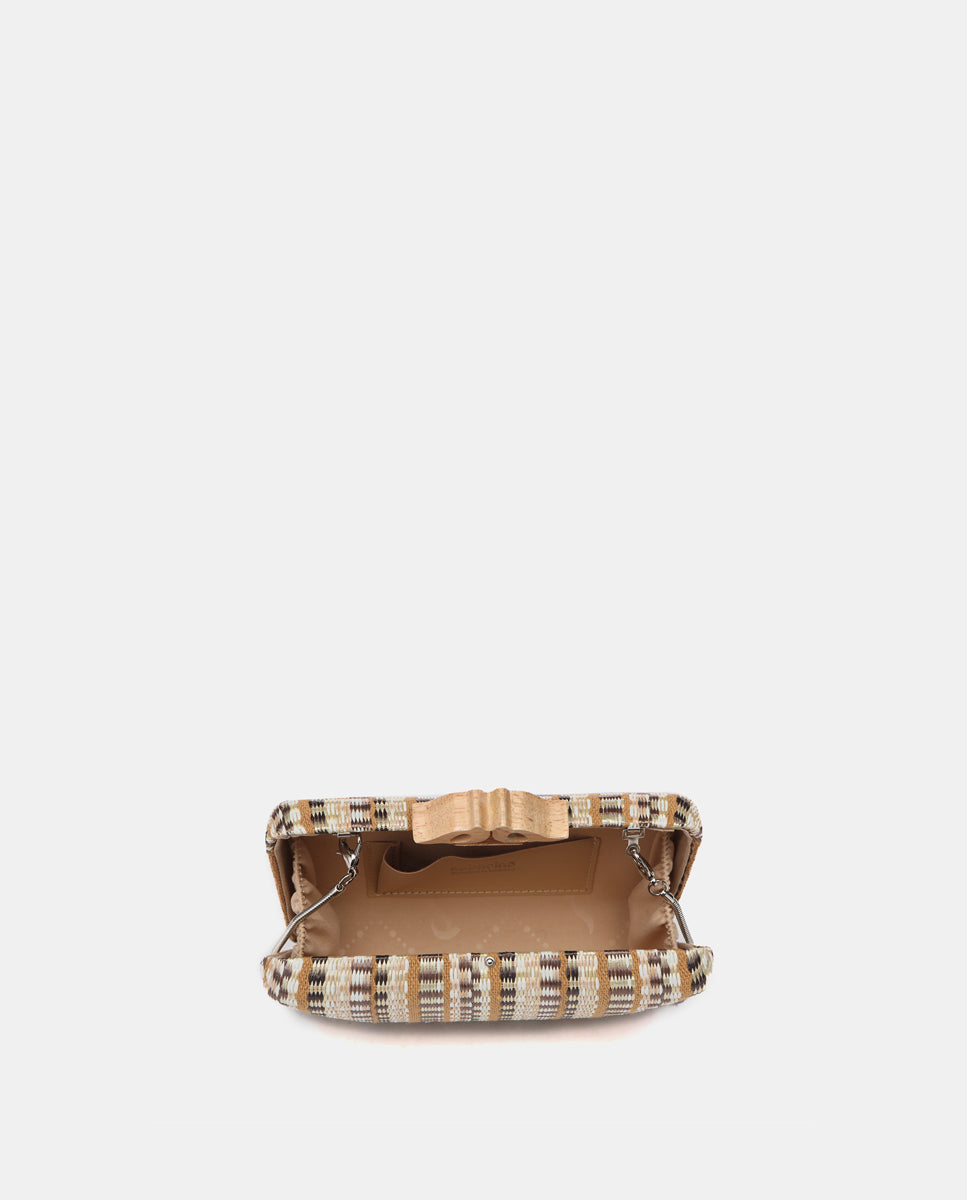 • Hergestellt aus geflochtenem Stoff, der verschiedene Farbnuancen kombiniert und ihr einen sehr schicken, ausgefallenen Touch verleiht.