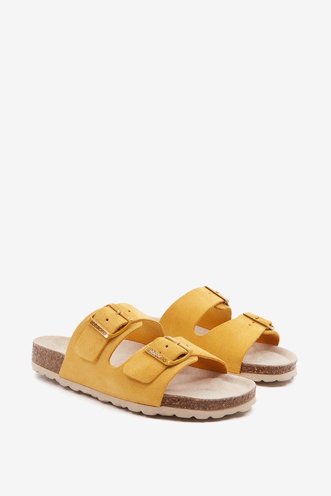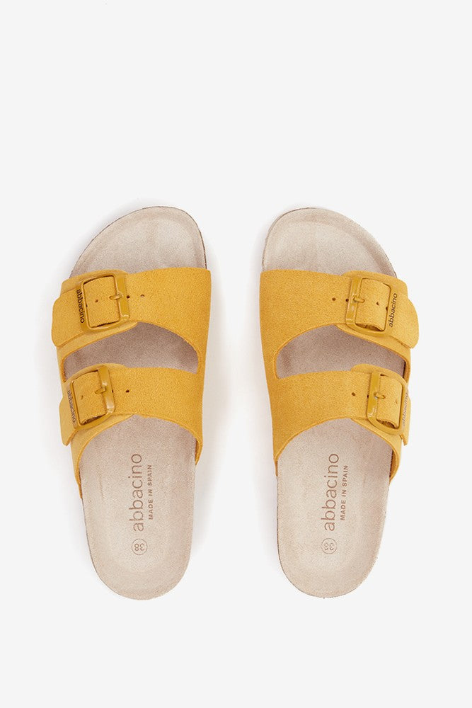 Flache Damen-Sandalette aus Wildleder in Amber.