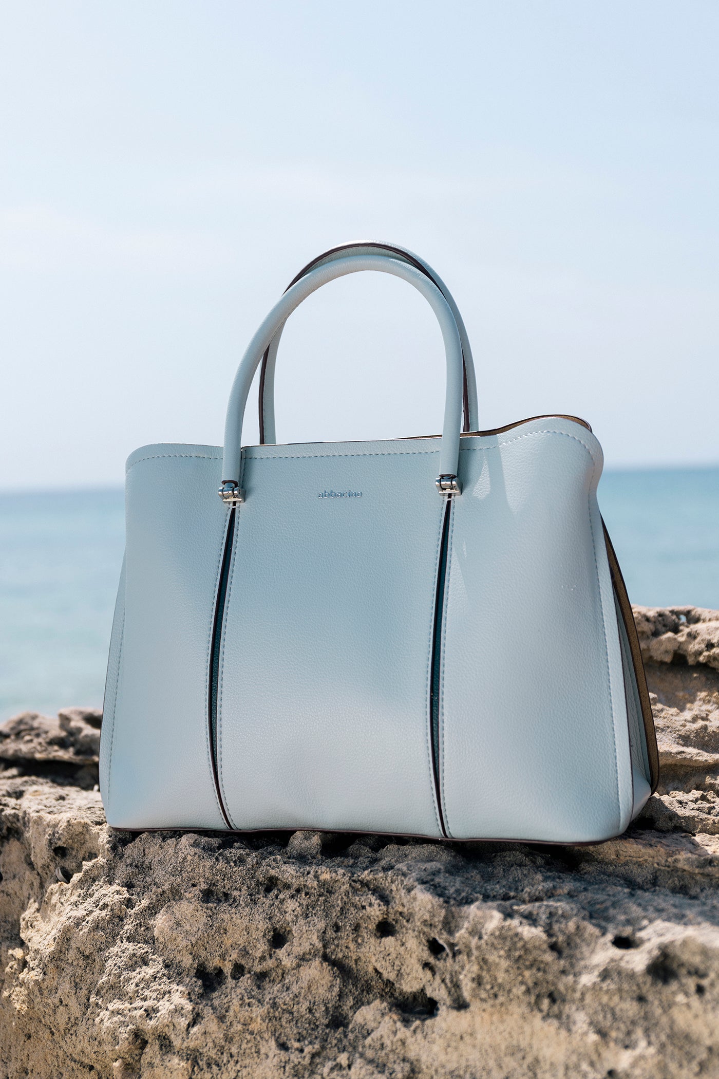 Handgefertigte Damenhandtasche im geflochtenen Design. Ein sehr vielseitiges Modell, das perfekt für den Strandbesuch oder einen Abendspaziergang geeignet ist. Das Geflecht erzeugt einen schönen, originellen geometrischen Effekt.