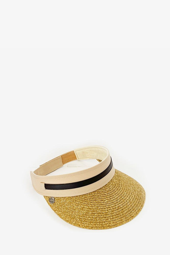Damenhut im handgewebten Schirm-Stil. Ein schlichtes Design, bei dem ein großes schwarzes Band hervorsticht, und mit einem verstellbaren Riemen hinten, der es uns ermöglicht, ihn an den Kopf anzupassen. Ideal für Strandtage.