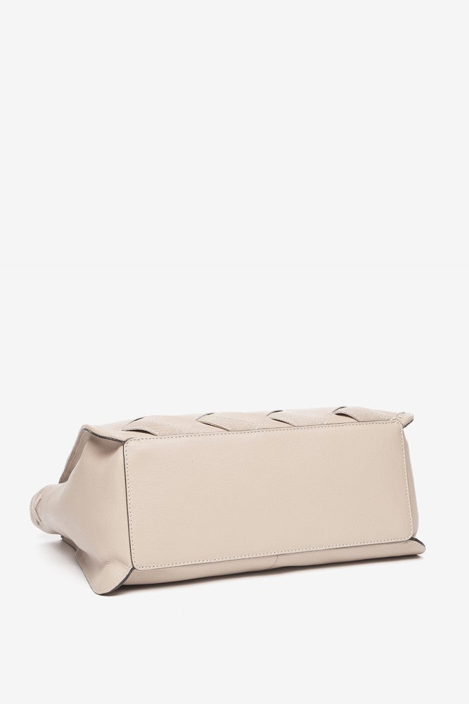 • Hergestellt aus hochwertigem geflochtenem Leder, das zwei Farbnuancen kombiniert.