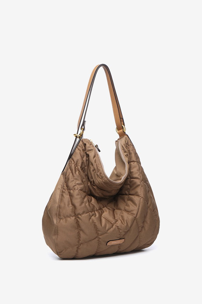 Multifunktionale Damenhandtasche aus gepolsterten und recycelten Stoffen. Ein winterliches Design, ideal zum Kombinieren mit deinen saisonalen Outfits. Im lässigen und informellen Stil handelt es sich um ein geräumiges Modell, in dem du deine unentbehrlichen Dinge überallhin mitnehmen kannst. Die Hauptmerkmale sind:
