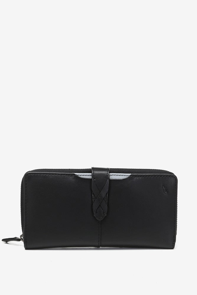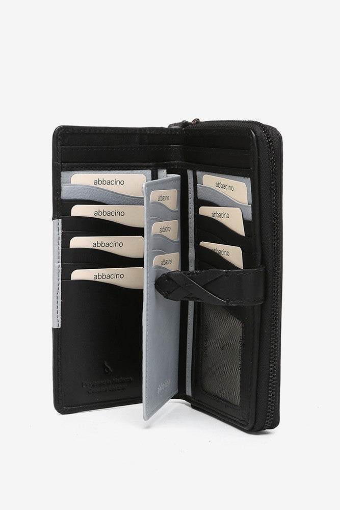 Große Geldbörse aus schwarzem Leder.