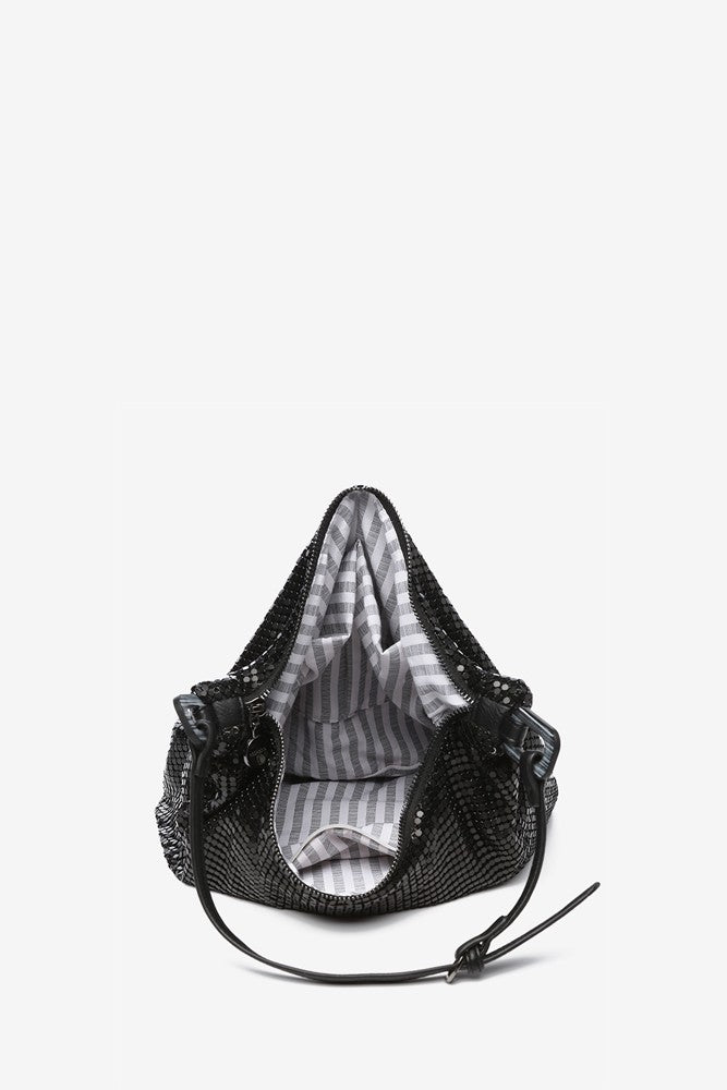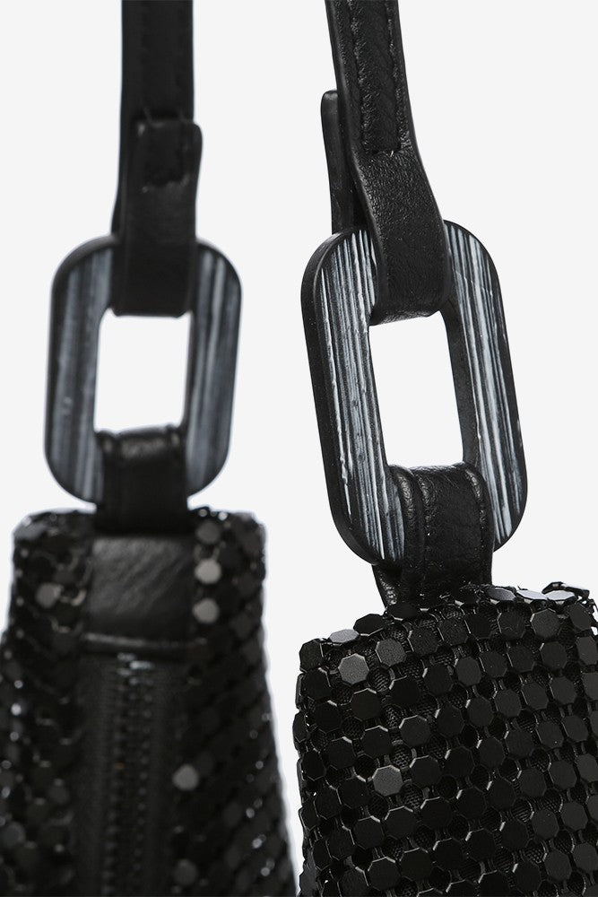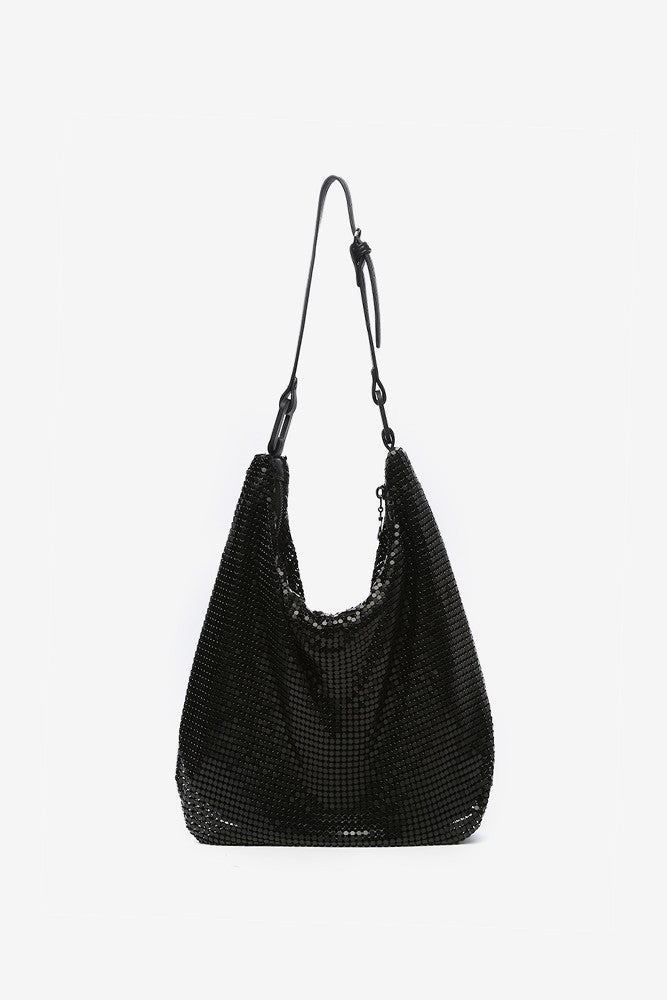 Schwarze Damen-Hobo-Party-Handtasche aus Metallnetz.