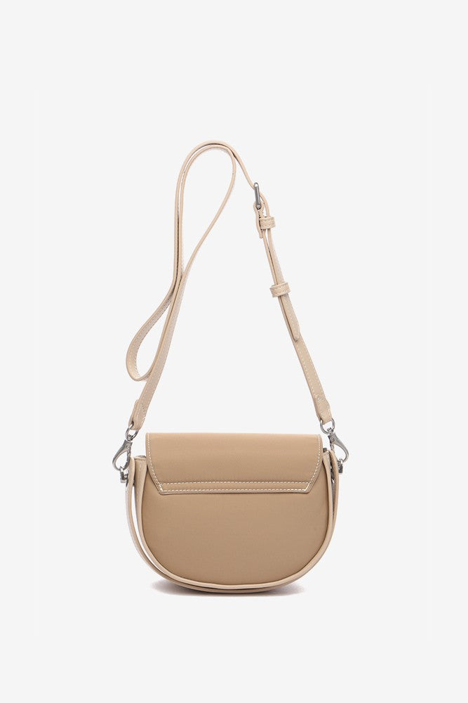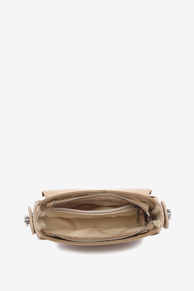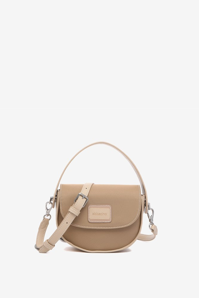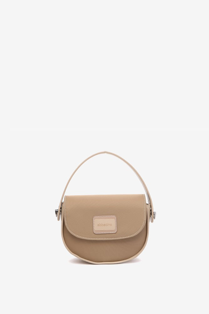 Kleine Umhängetasche aus recycelten Materialien in Camel.