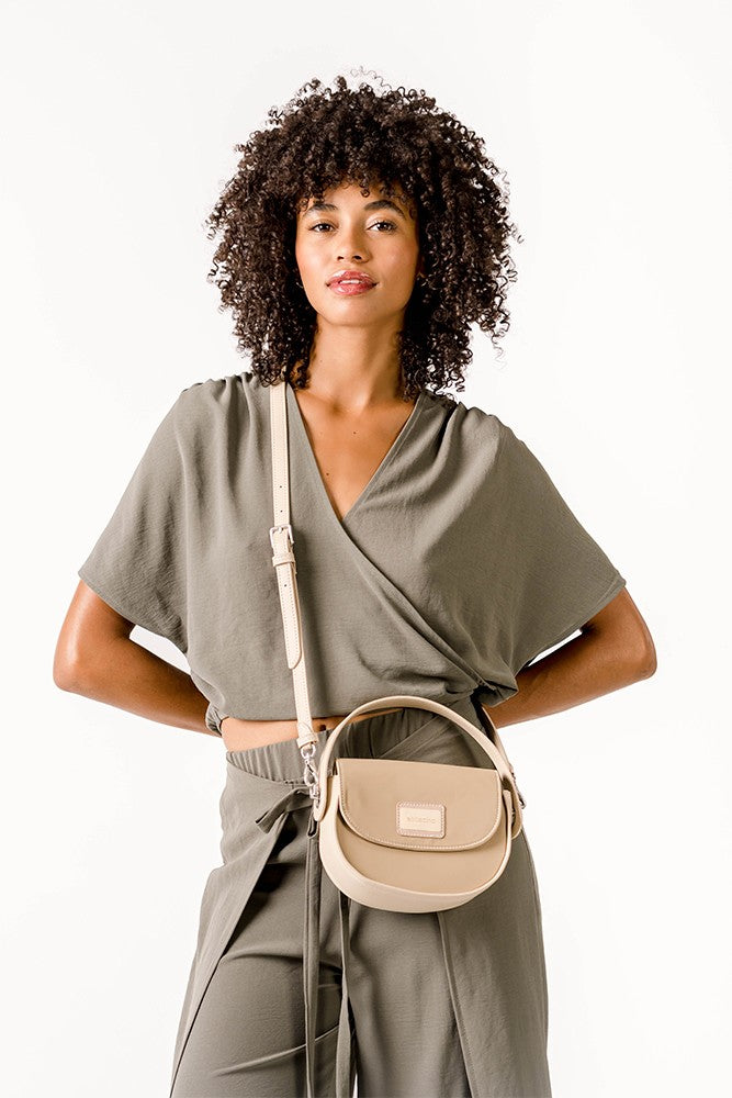 Kleine Umhängetasche für Frauen, hergestellt aus recycelten Materialien und mit einem subtilen, satinierten Finish, das für den Stoff typisch ist. Ein vielseitiges Modell im lässigen Stil, ideal für den täglichen Gebrauch. Ihre Hauptmerkmale sind: