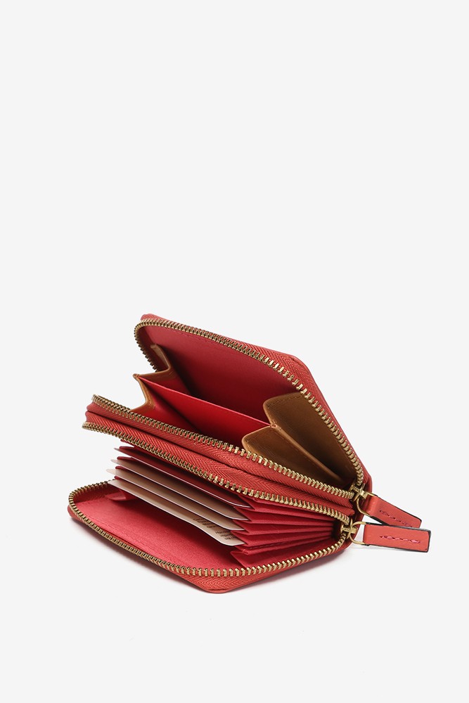 • Im Inneren verfügt sie über mehrere Kartenfächer und ein Münzfach mit Reißverschluss.