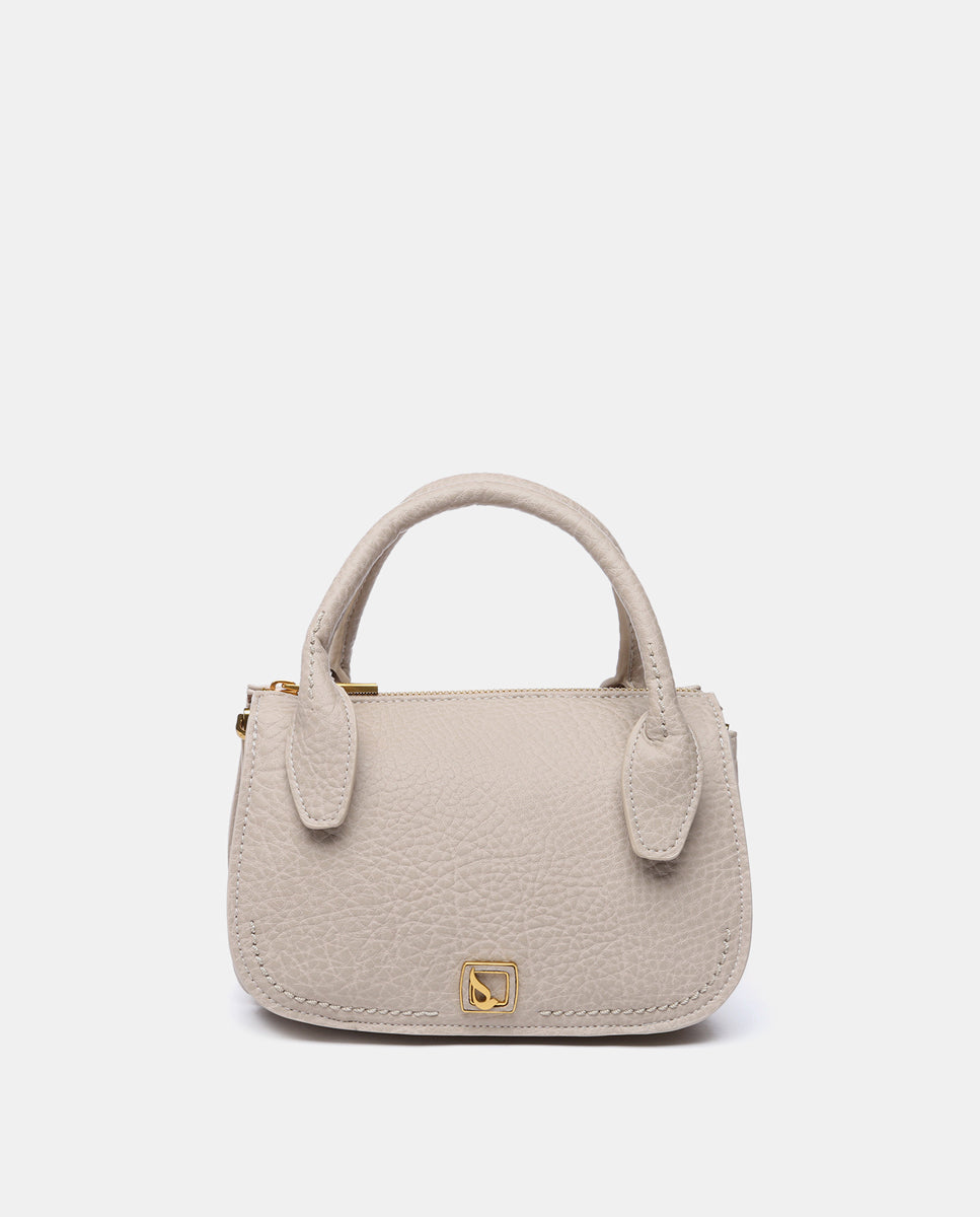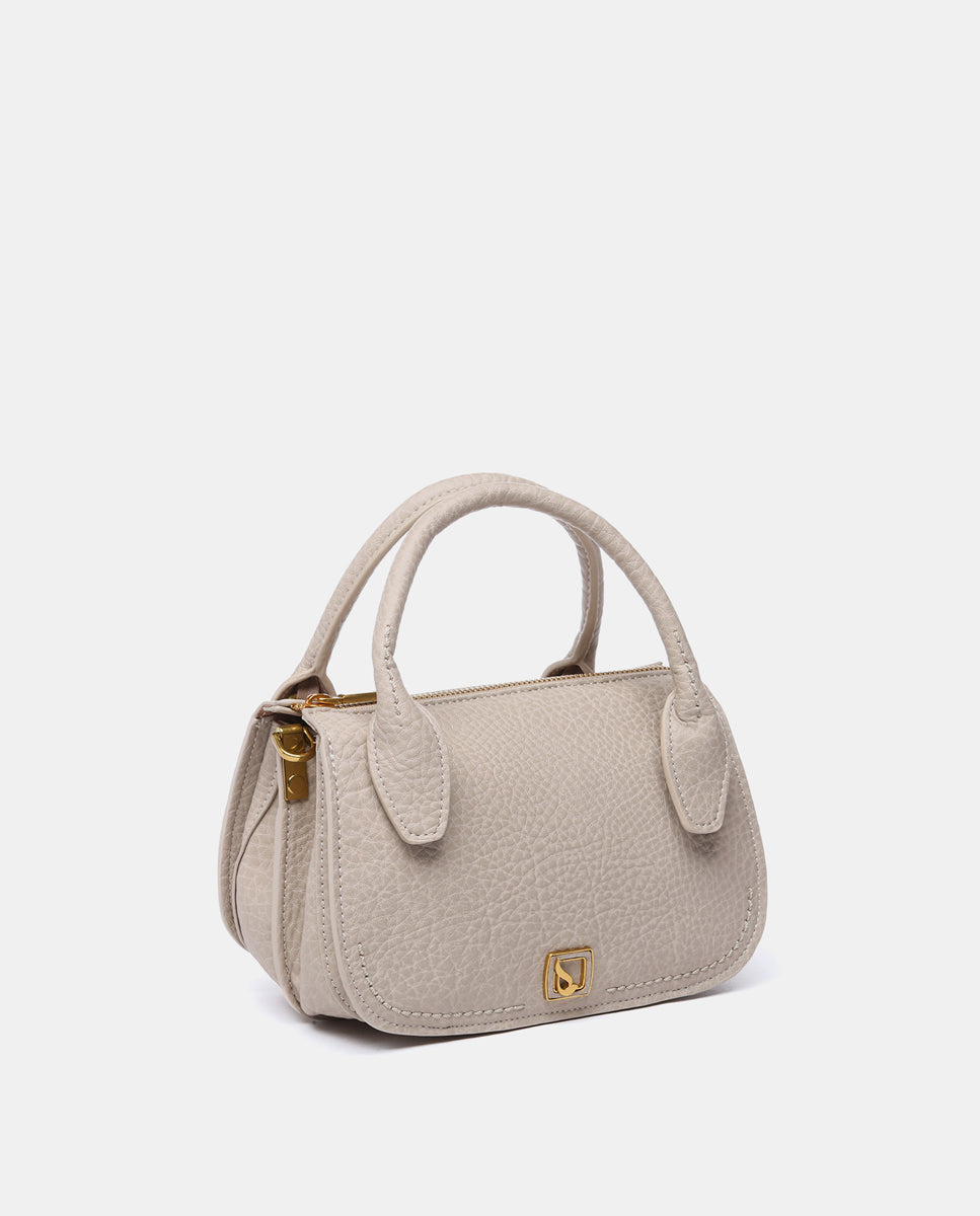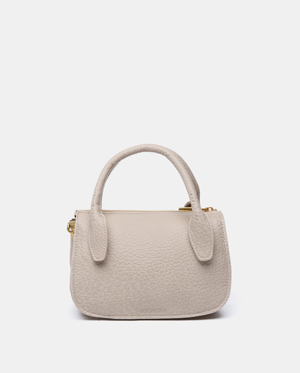 Kleine Handtasche aus recycelten Materialien in Beige.