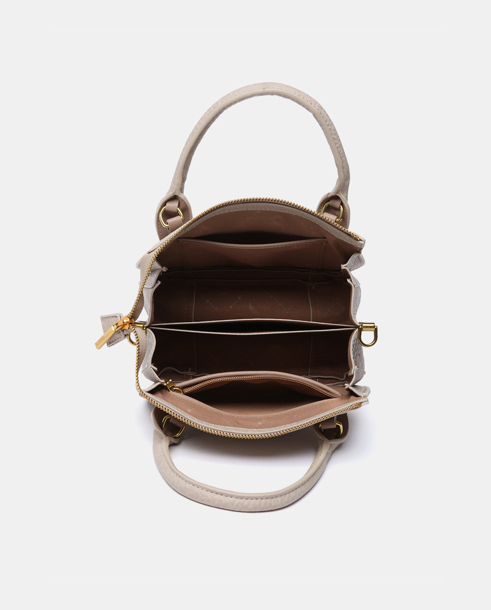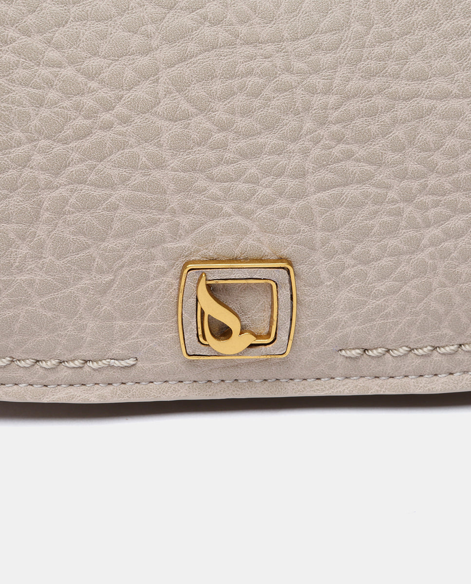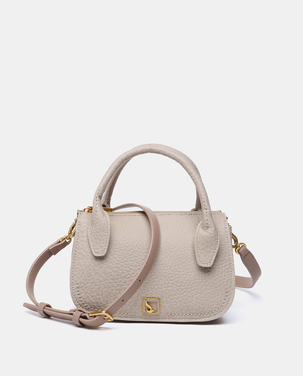 Kleine Handtasche aus recycelten Materialien in Beige.