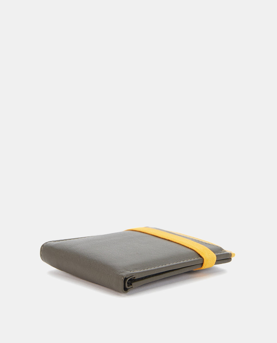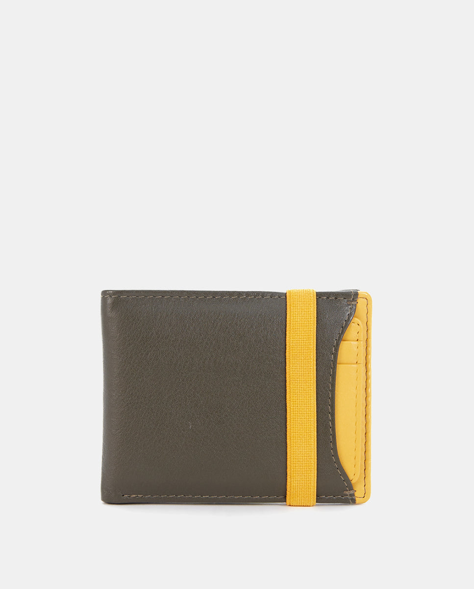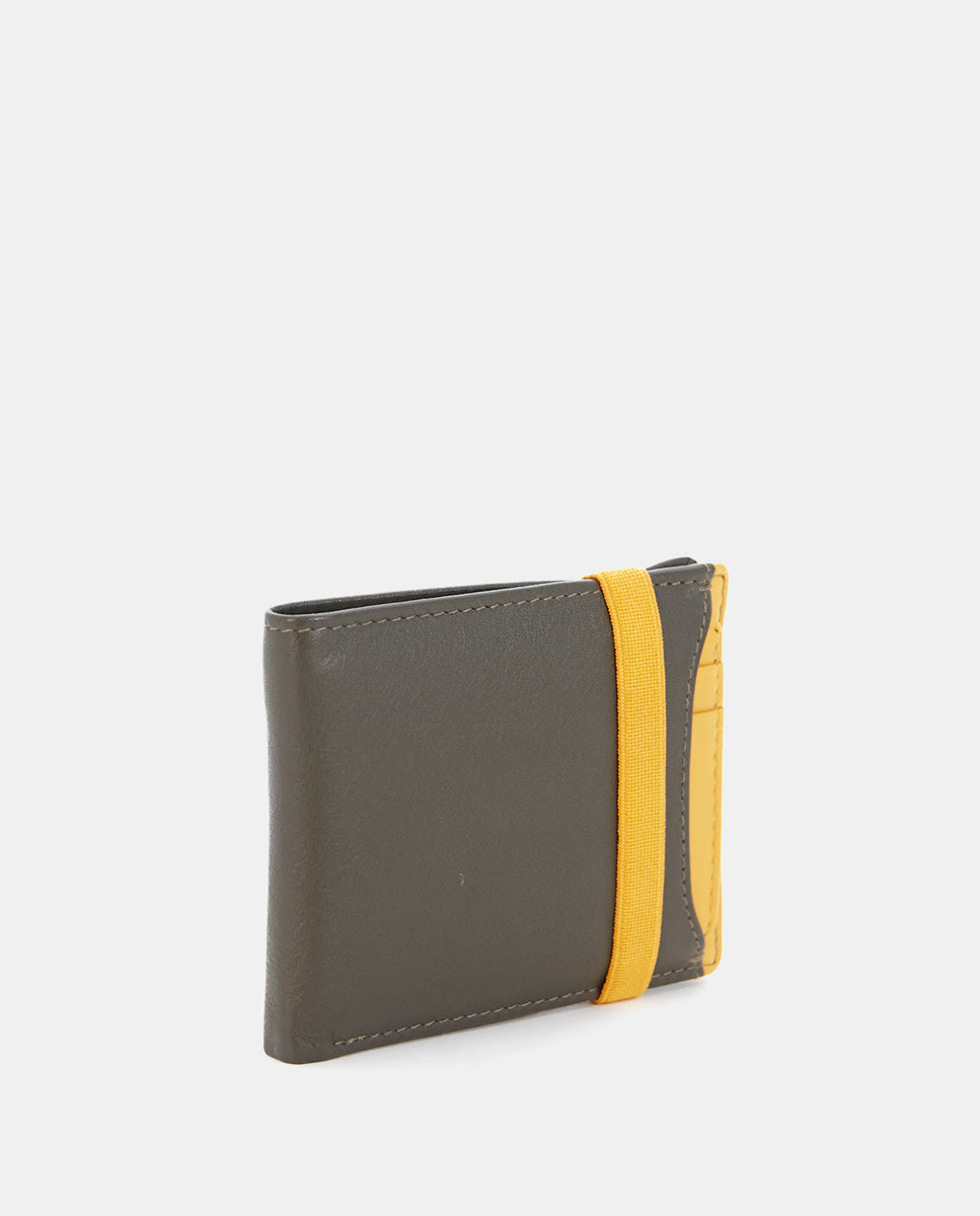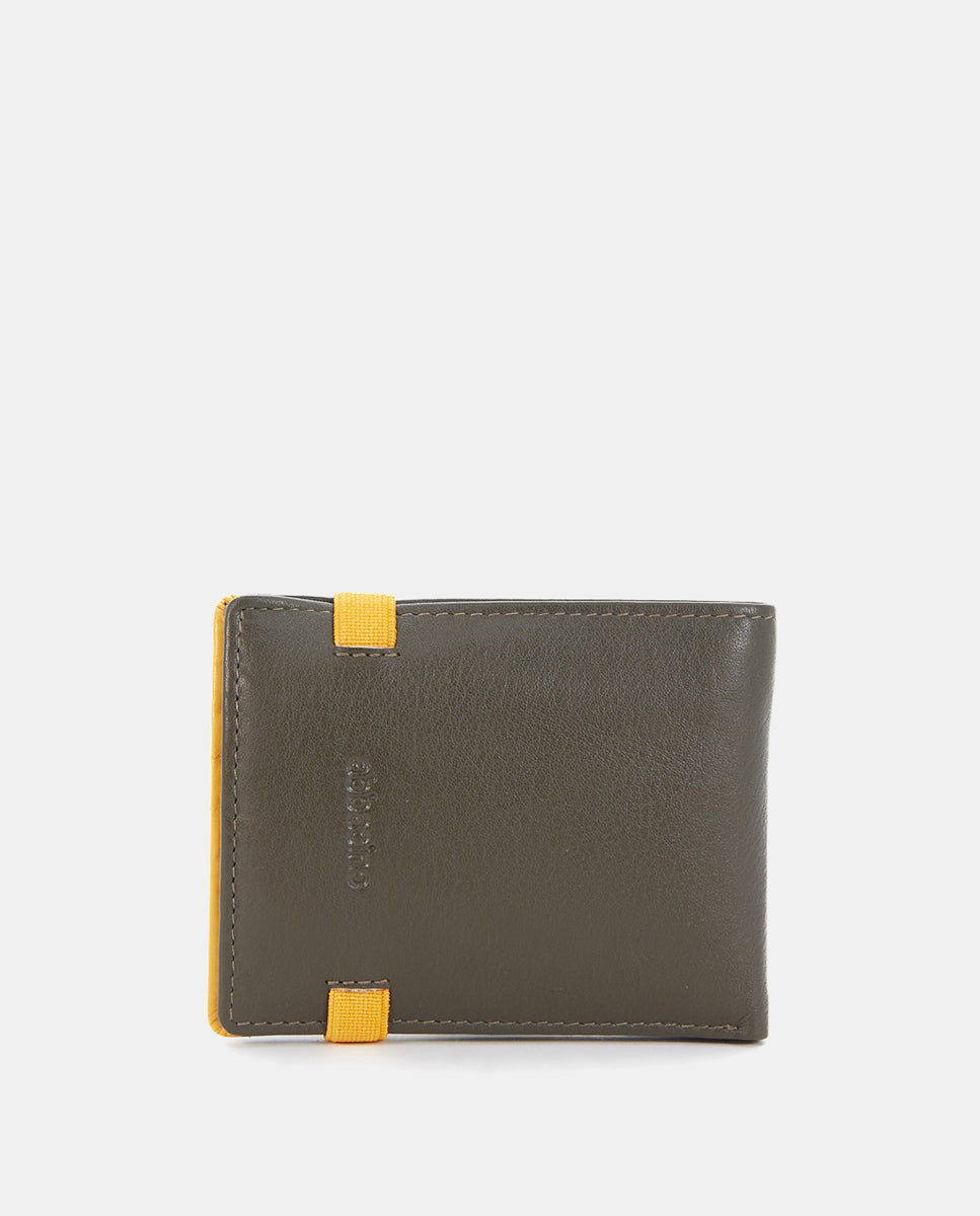 Kleine Herrenbörse aus Rindsleder. Ein sehr praktisches Modell mit elastischem Verschluss, das zwei Farbnuancen kombiniert. Sie verfügt über verschiedene Organisationsfächer für Karten und Scheine. Außen hat sie ein herausnehmbares Kartenetui. RFID-Schutzsystem.